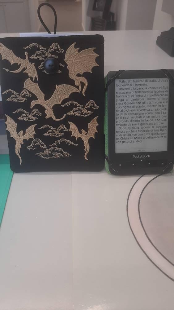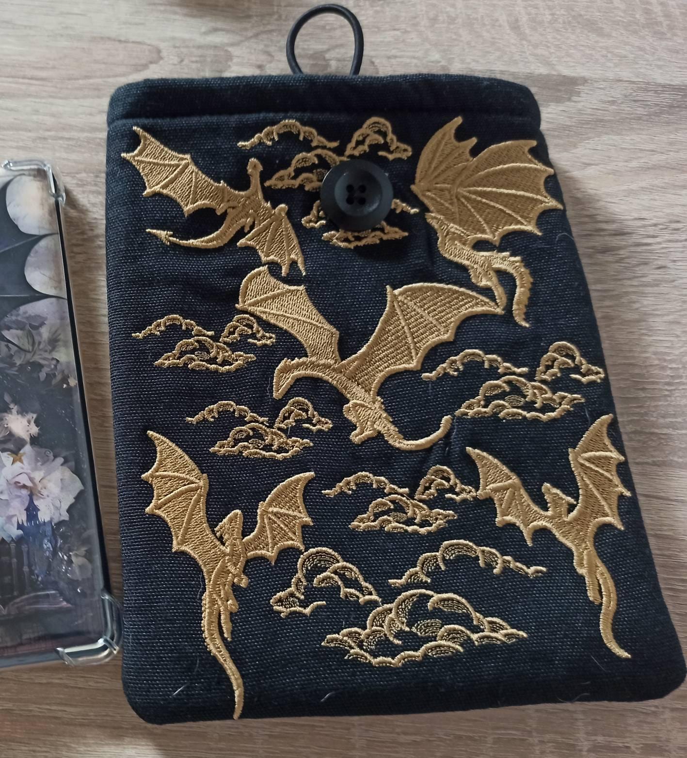 Padded Dragons Kindle Sleeve – Handmade Embroidery Book Protector – Fabric E-Reader Cover – Fantasy Gift for Readers