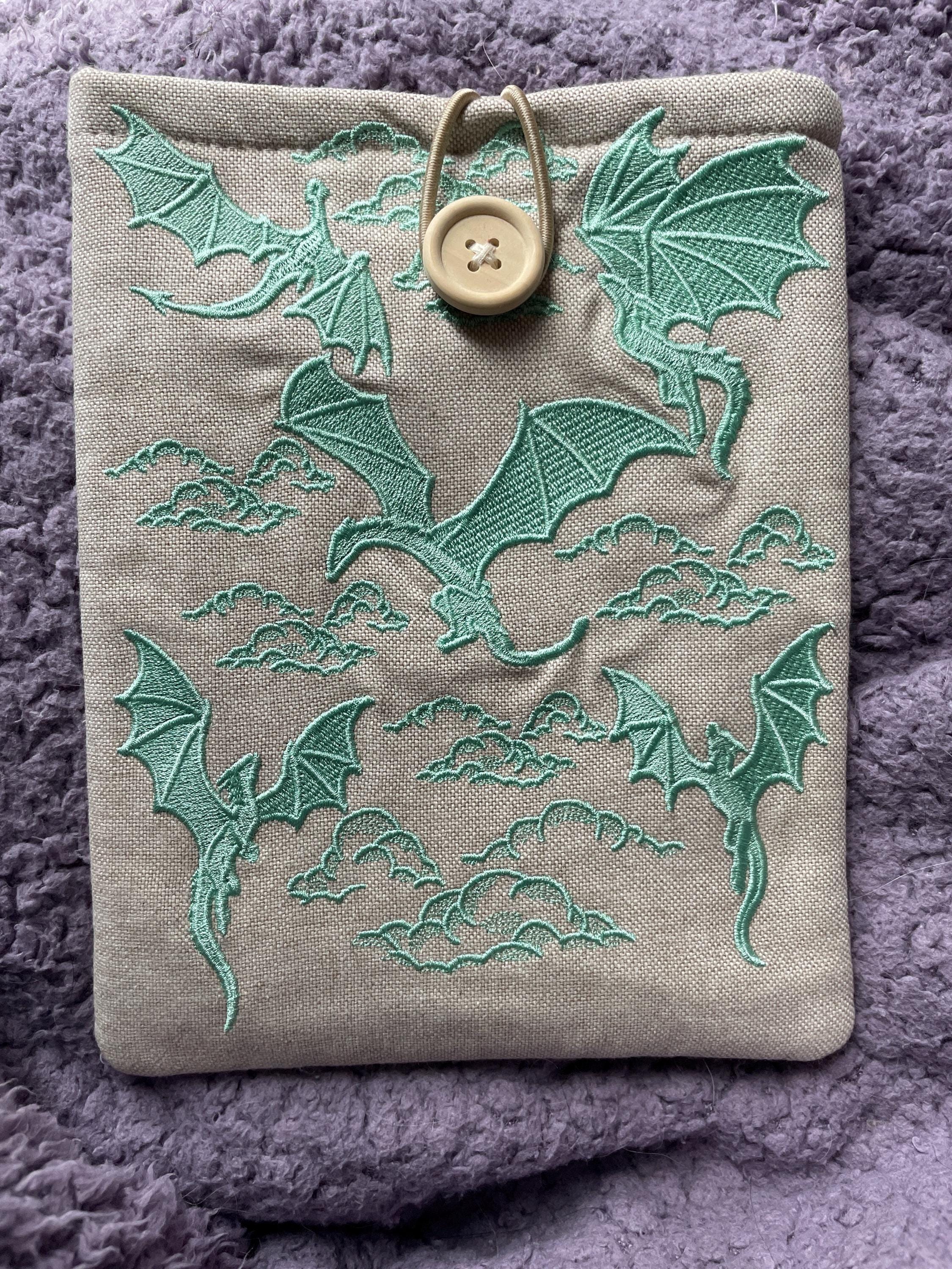 Fantasy Dragons Embroidery Sleeve – Padded Kindle & E-Reader Cover – Handmade Fabric Protector – Gift for Bookworms