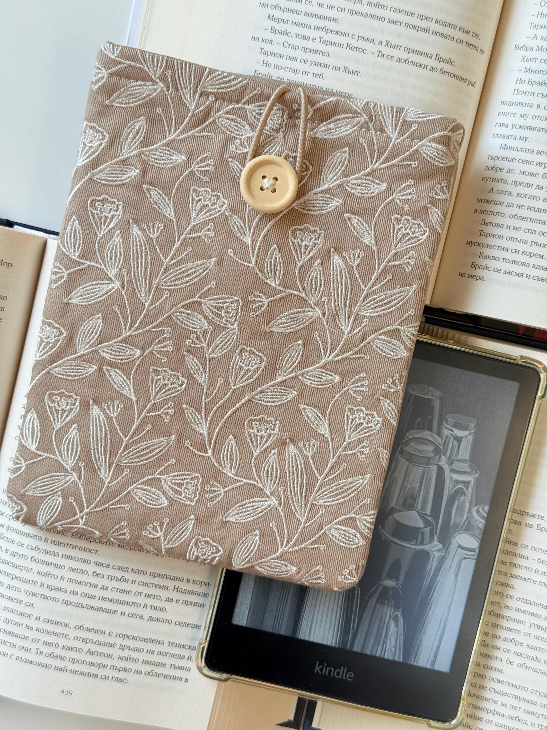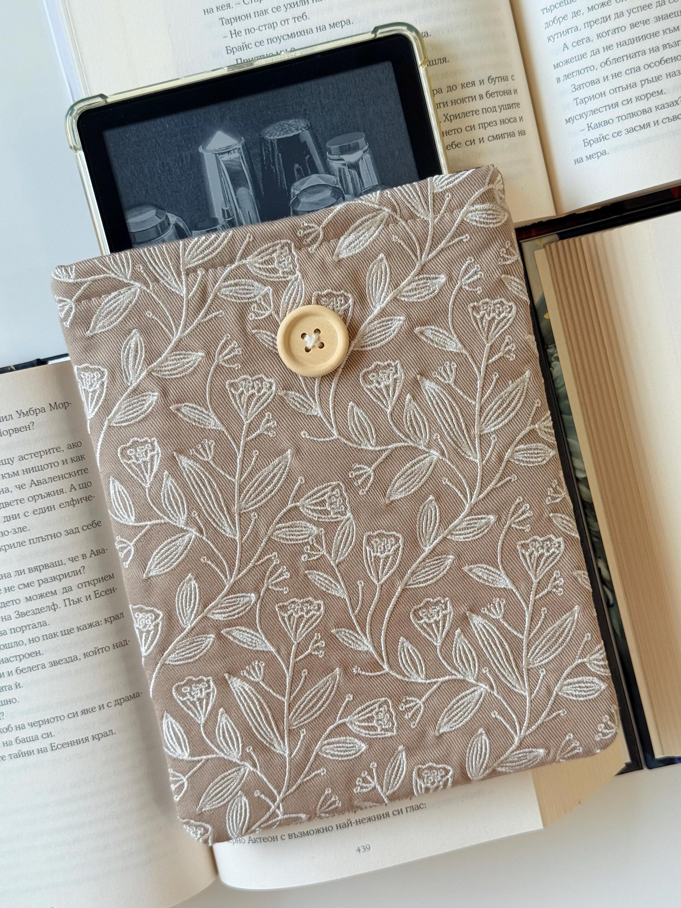 Protect your stories in style 🌸 This handmade padded Kindle sleeve features my own embroidery design of floral patterns, created exclusively for Lullaby Crafts World. Unique and elegant, it keeps your Kindle or e-reader safe from scratches and dust while adding a touch of floral charm.