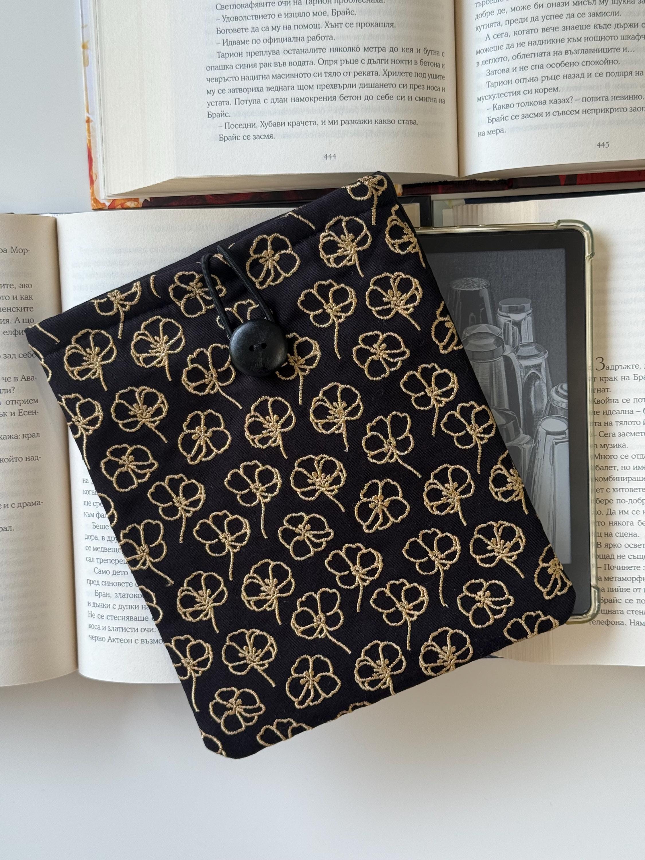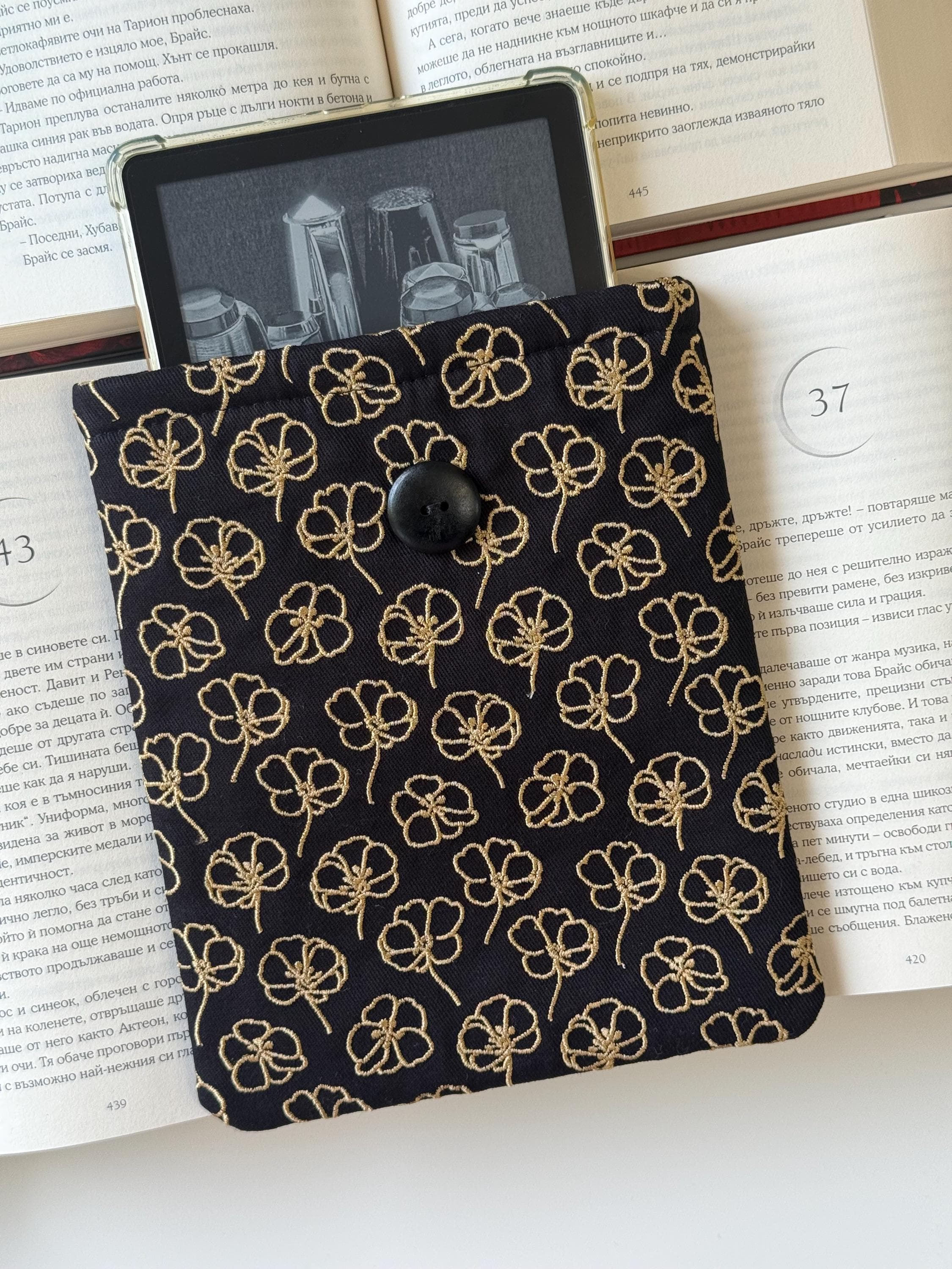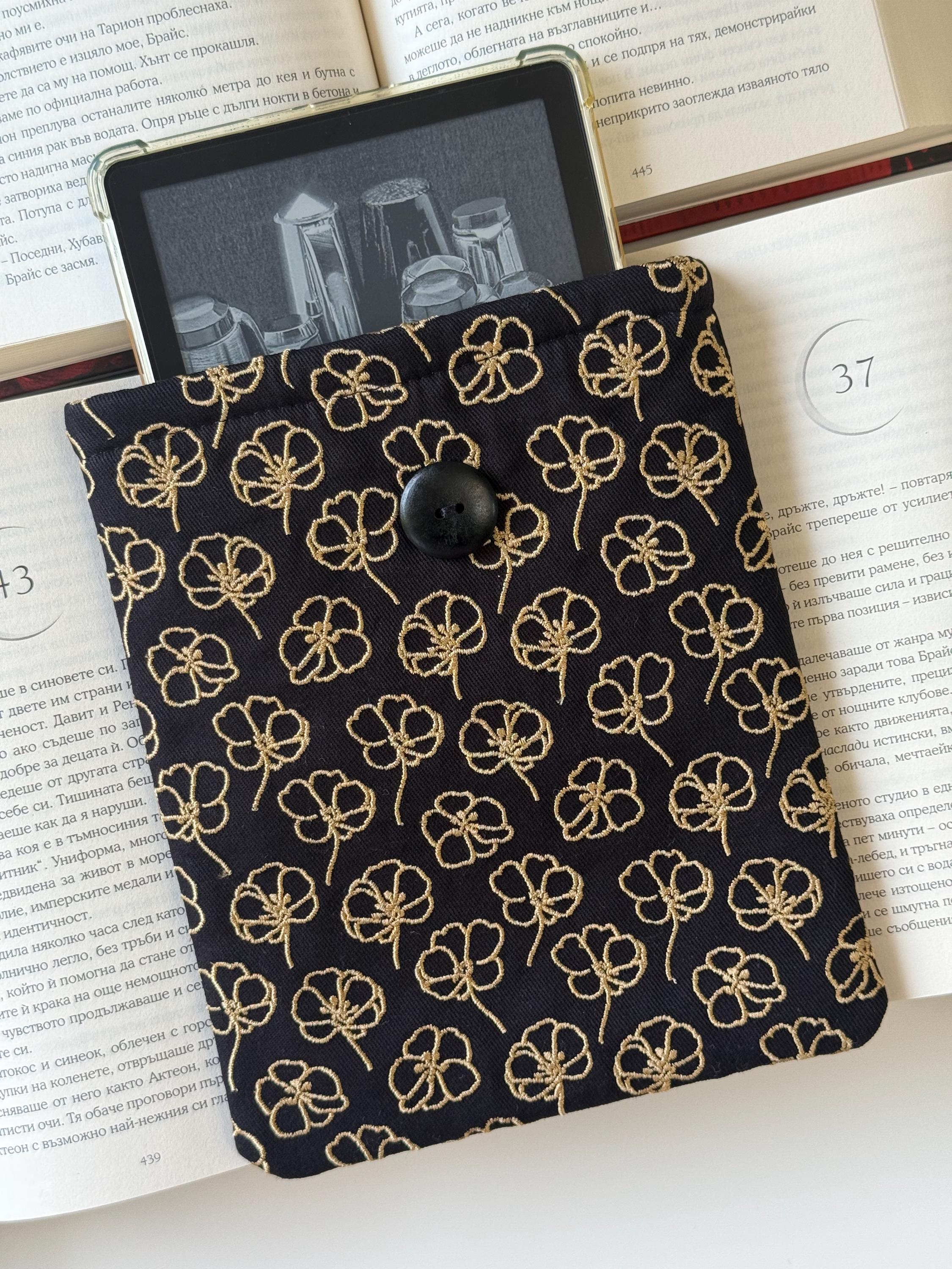 Elegant Floral Embroidery Kindle Sleeve – Handmade Padded Fabric Protector, Gift for Readers