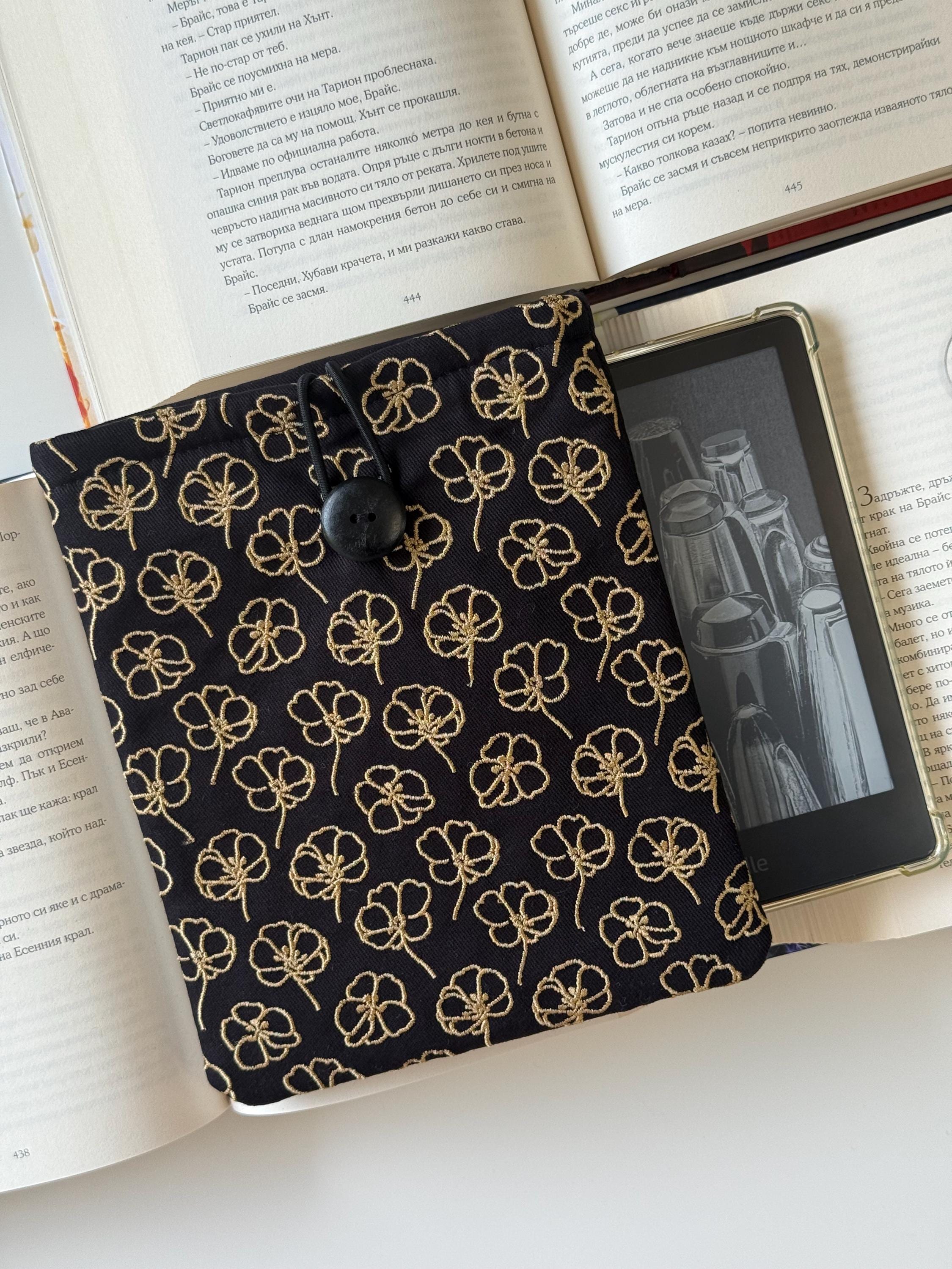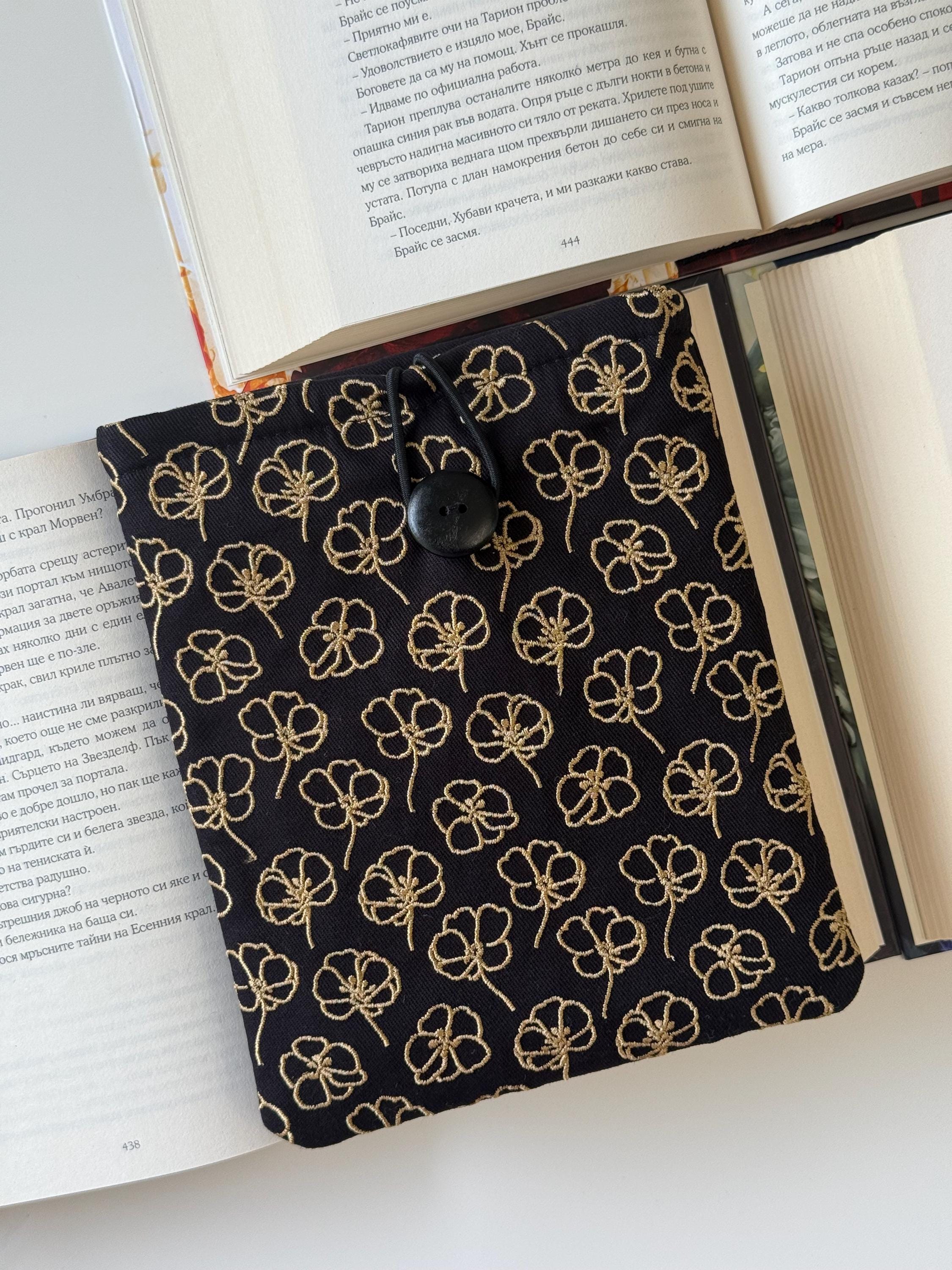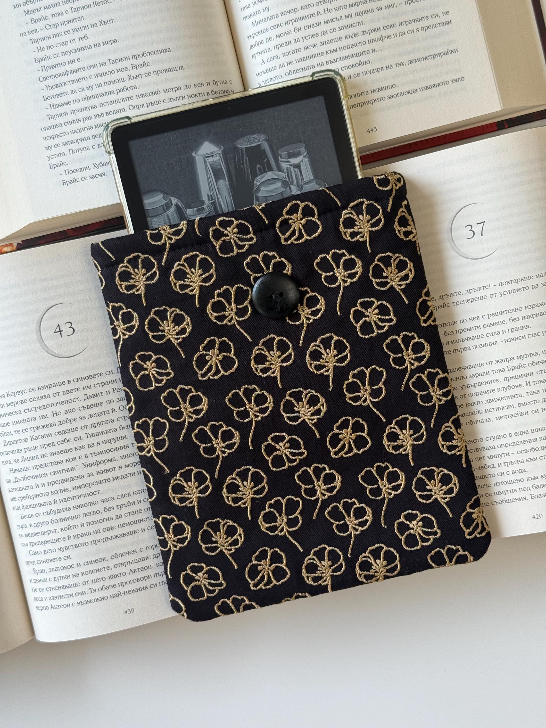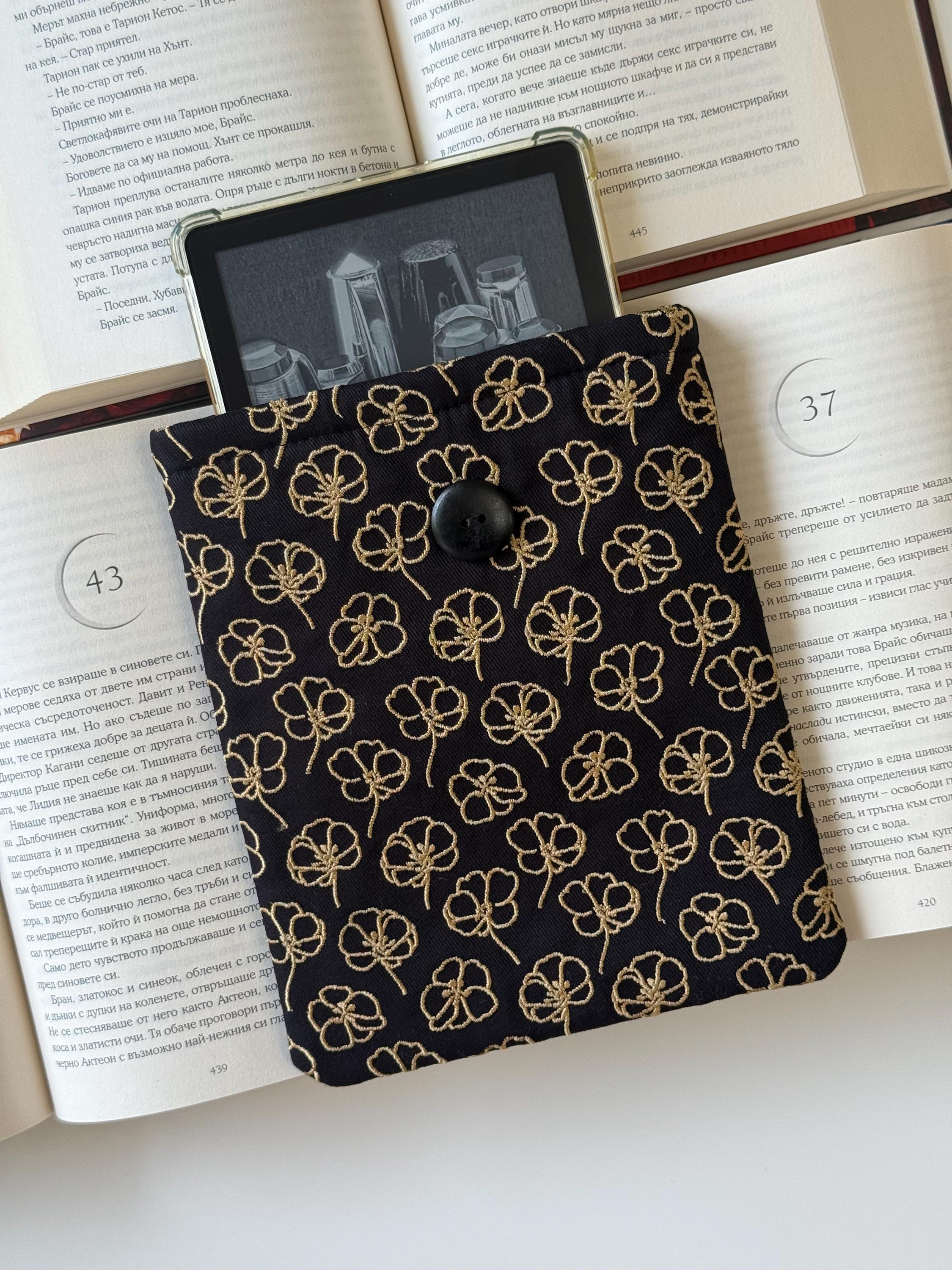Elegant Floral Embroidery Kindle Sleeve – Handmade Padded Fabric Protector, Gift for Readers