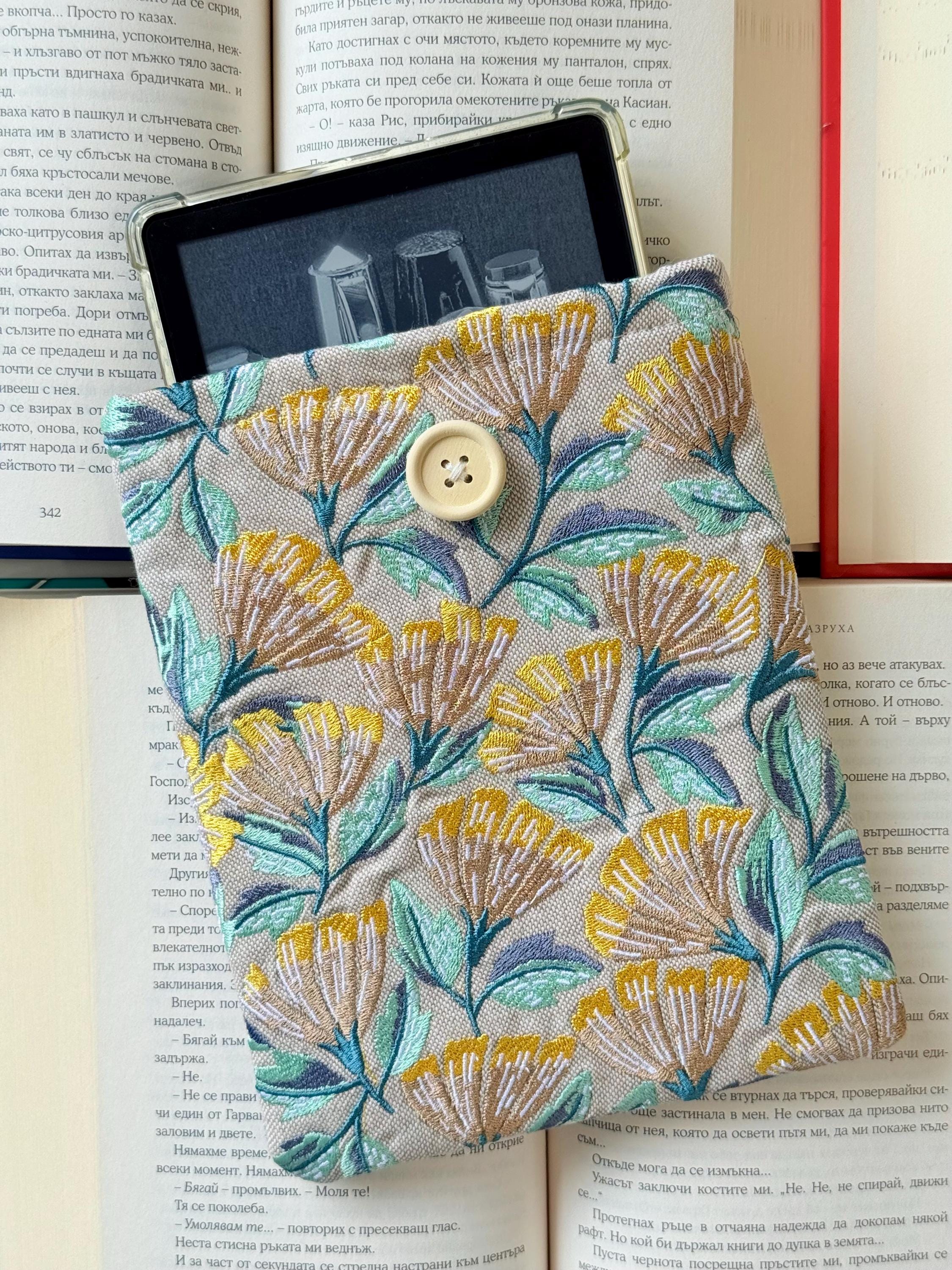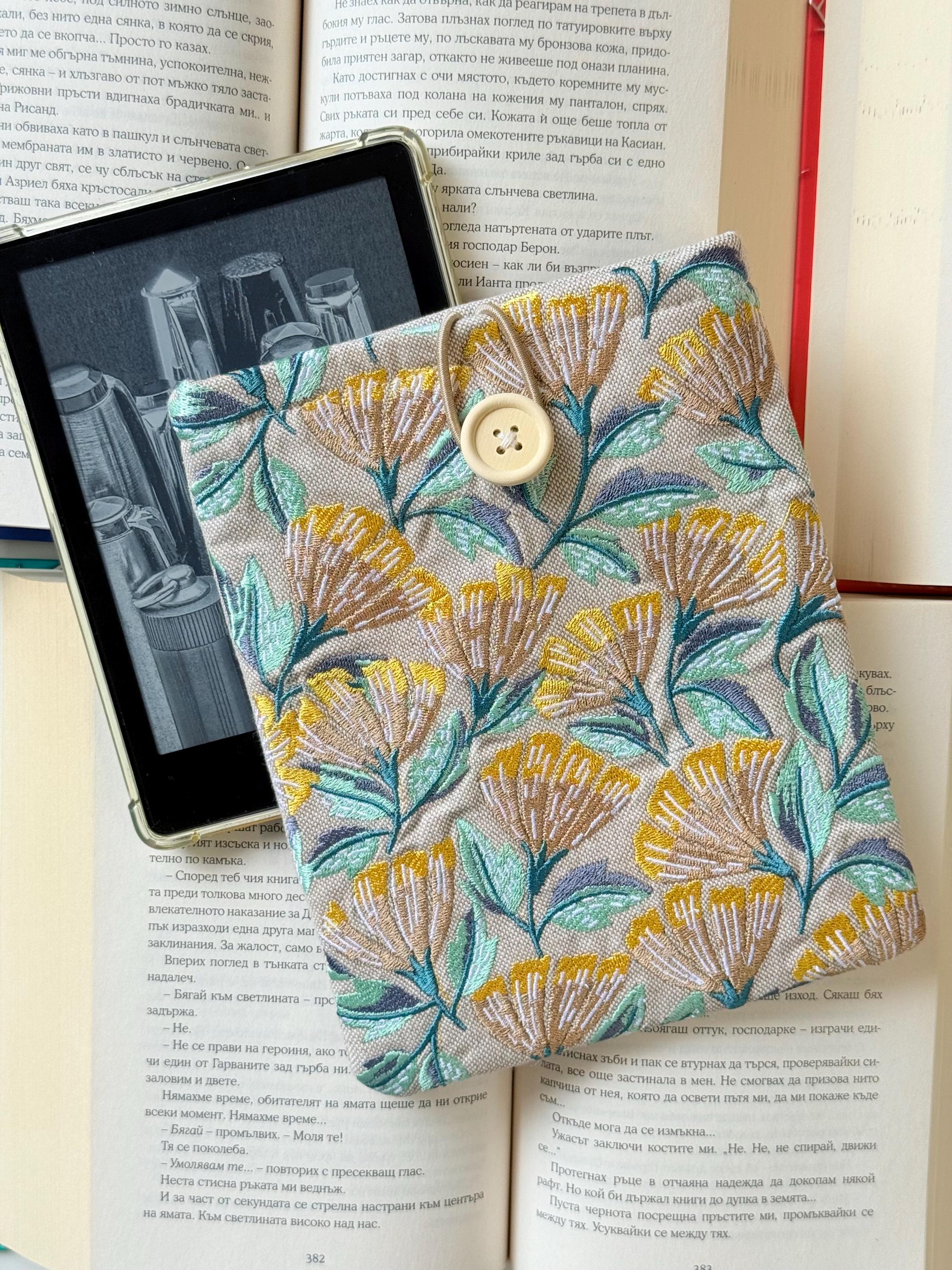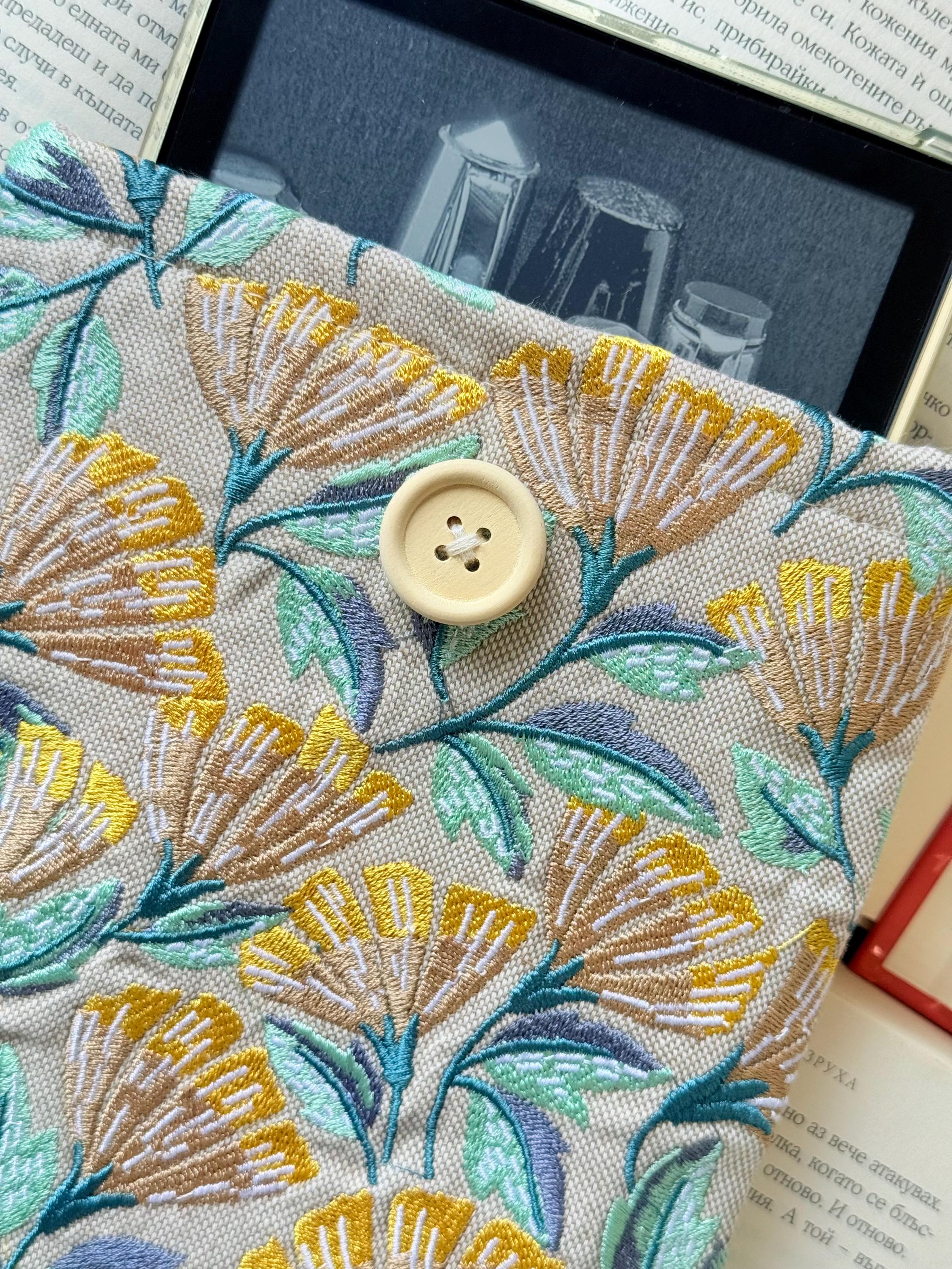 Wrap your Kindle in timeless beauty 🌸 This handmade padded Kindle sleeve is crafted from Liberty fabric and features my own embroidery design of vintage flowers, created exclusively for Lullaby Crafts World. A romantic blend of vintage charm and modern function, it keeps your Kindle safe from scratches, dust, and daily use.