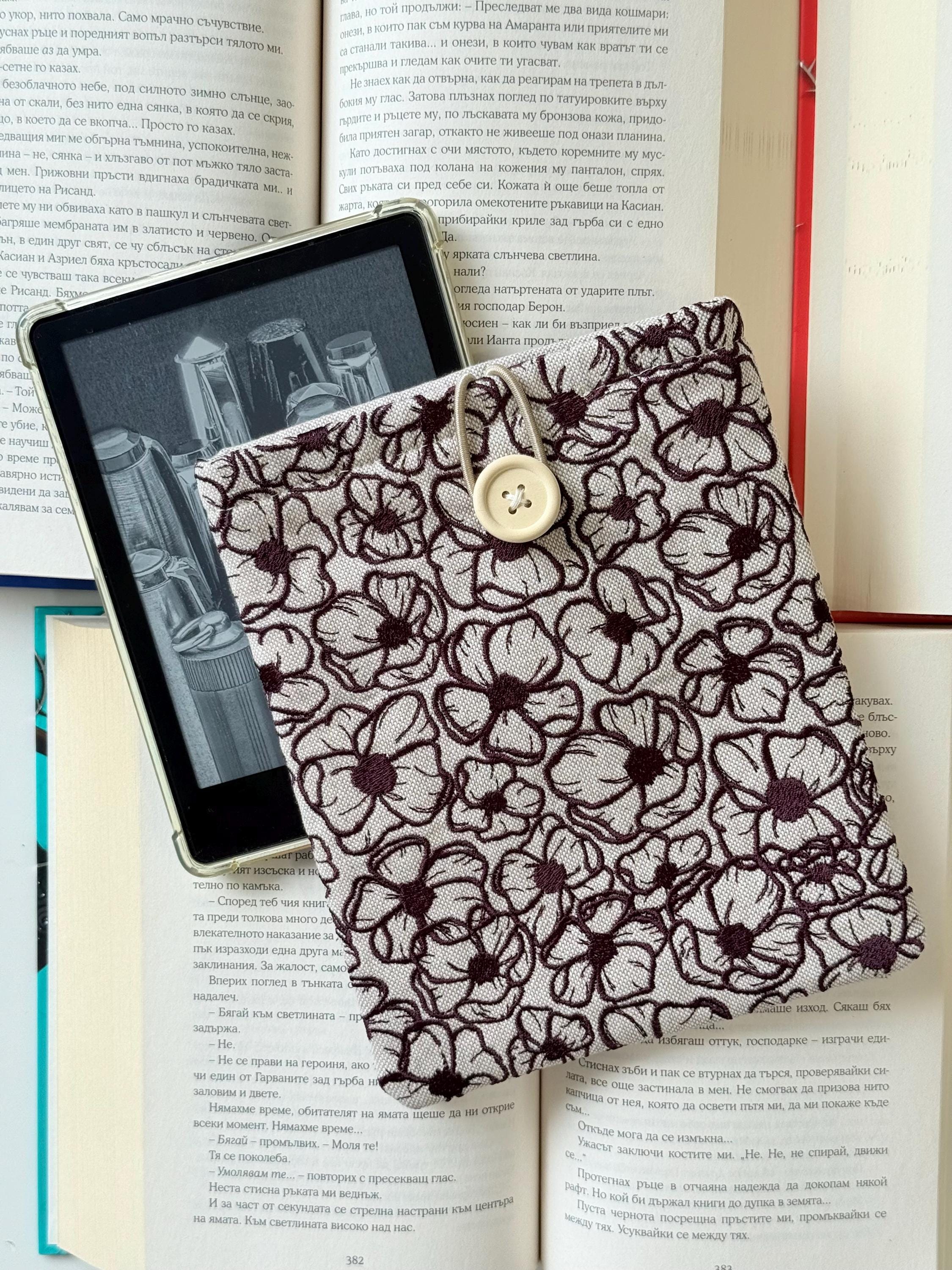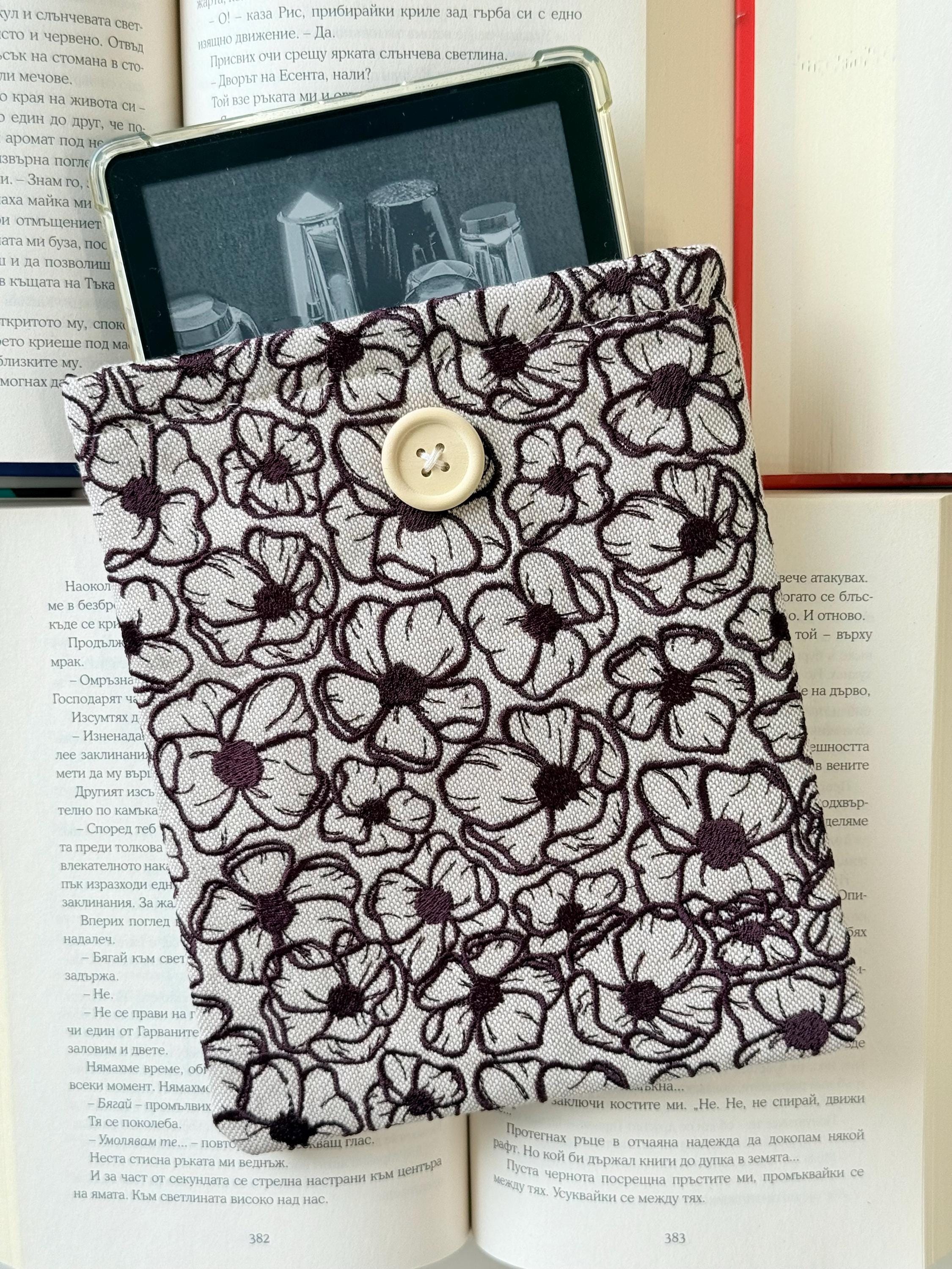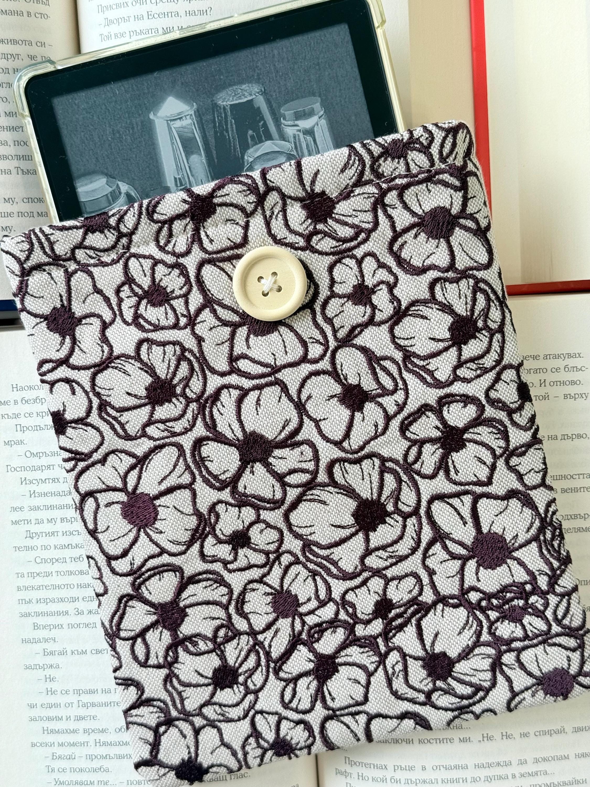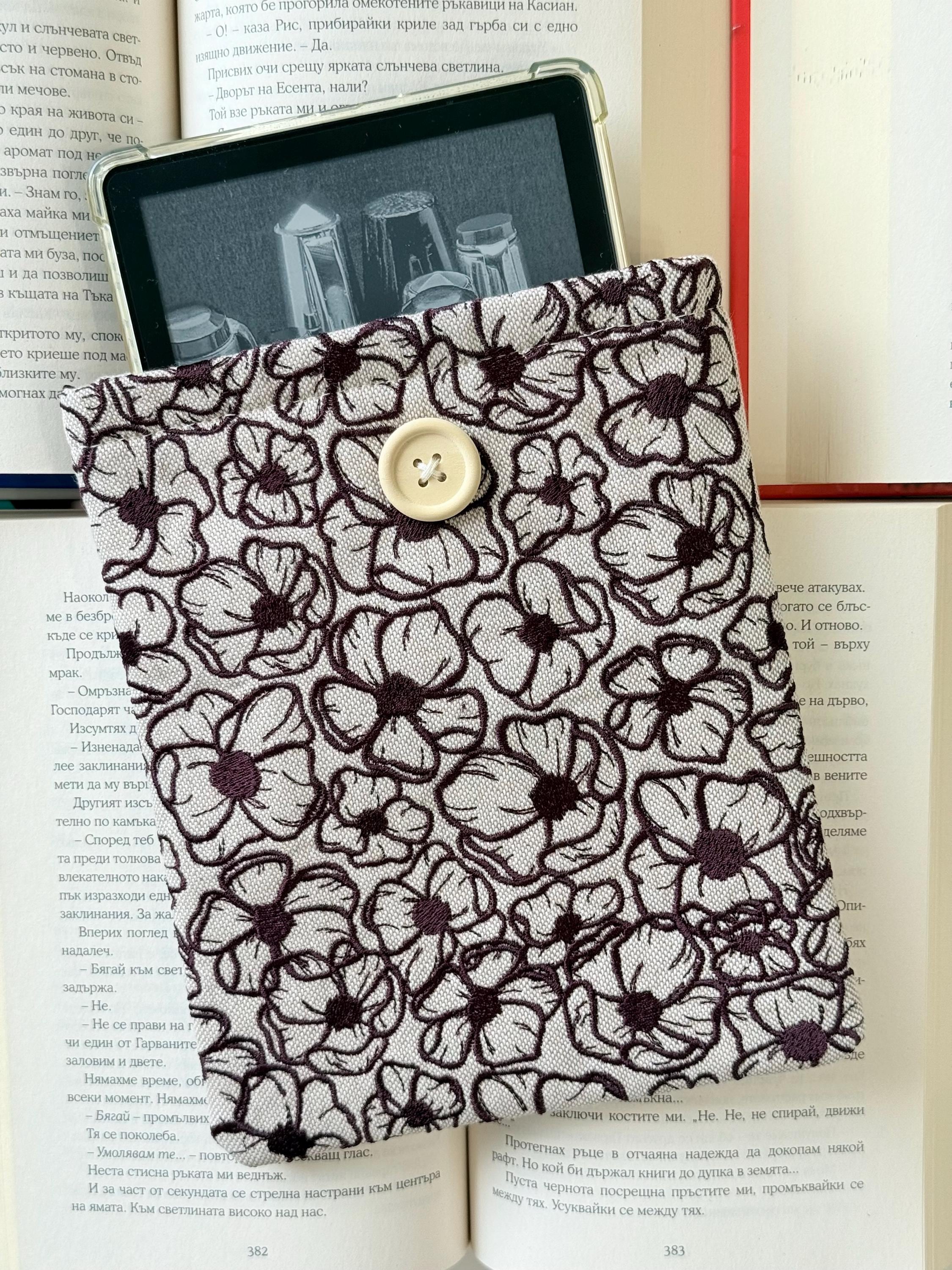 Protect your stories in style 🌸 This handmade padded Kindle sleeve features my own embroidery design of floral patterns, created exclusively for Lullaby Crafts World. Unique and elegant, it keeps your Kindle or e-reader safe from scratches and dust while adding a touch of floral charm.