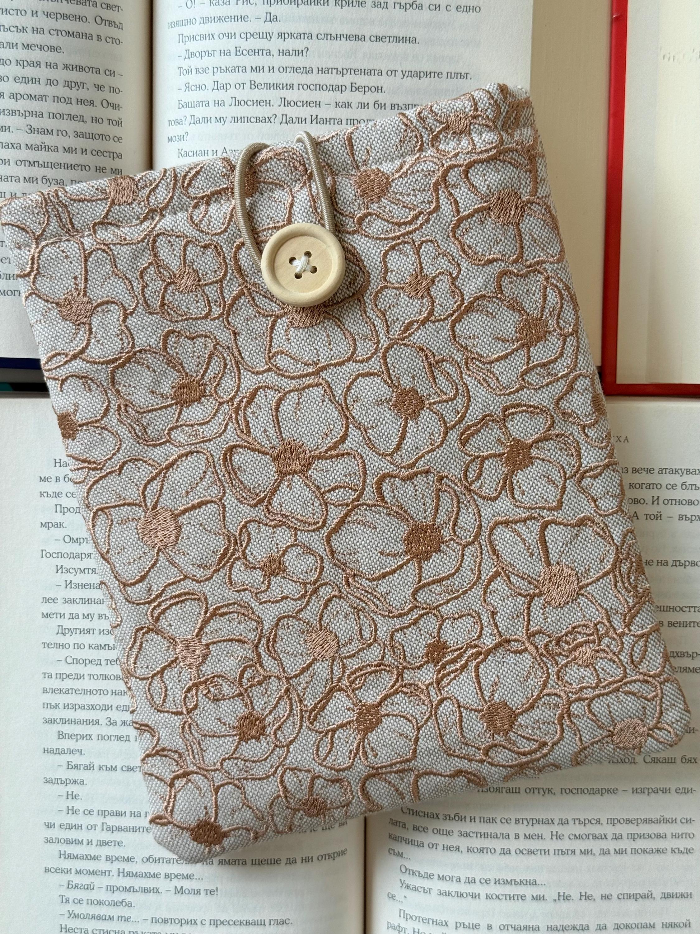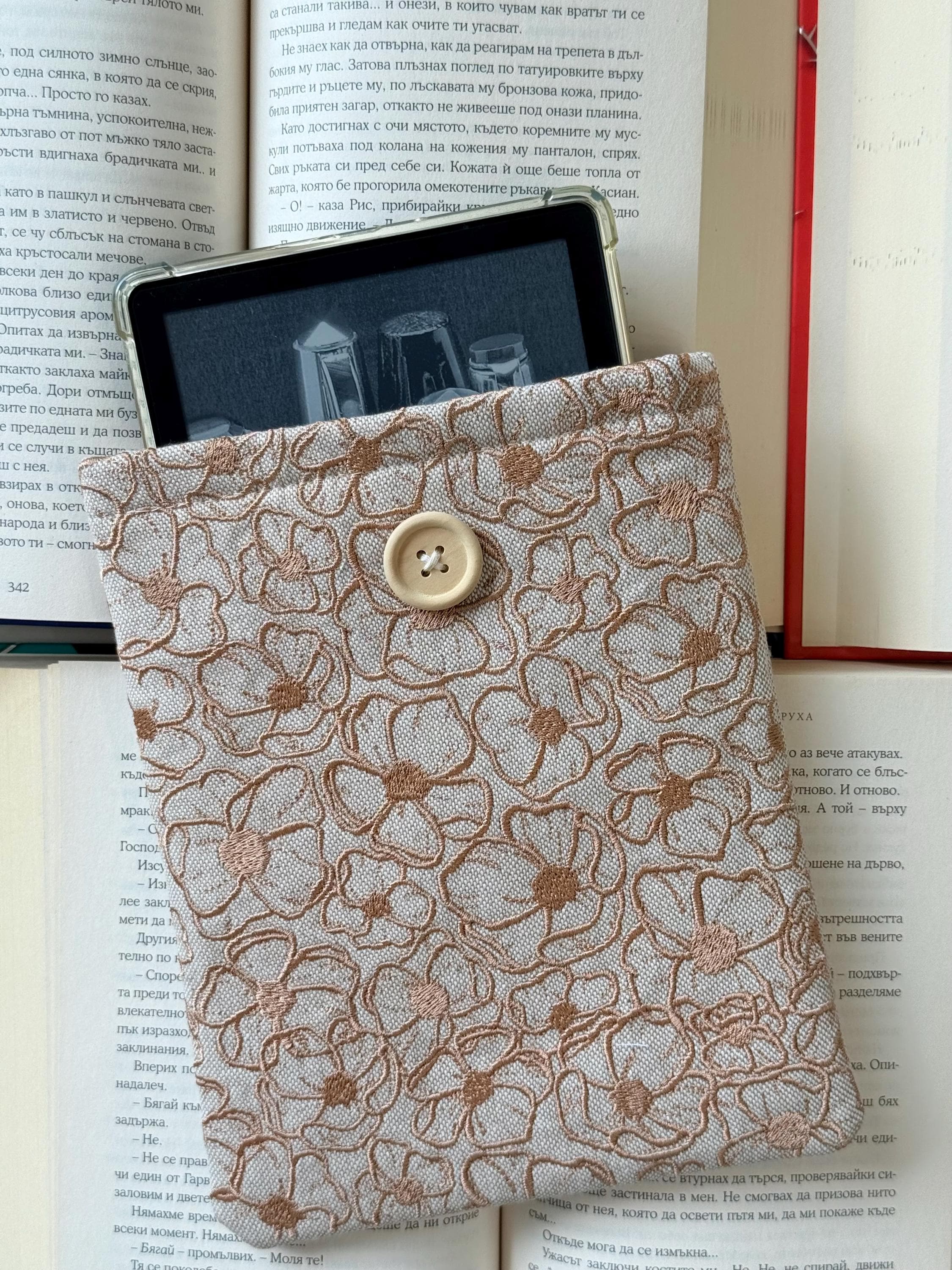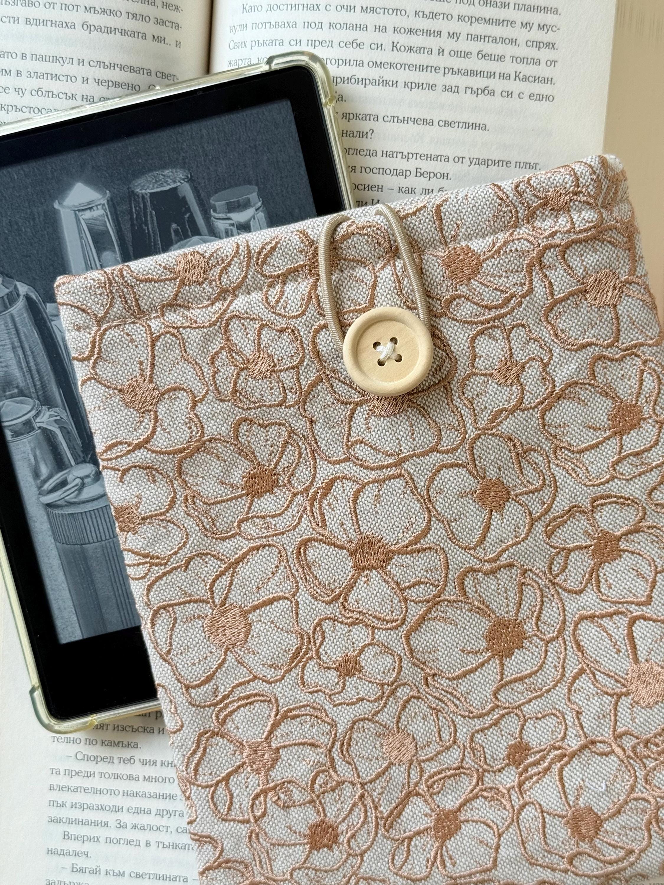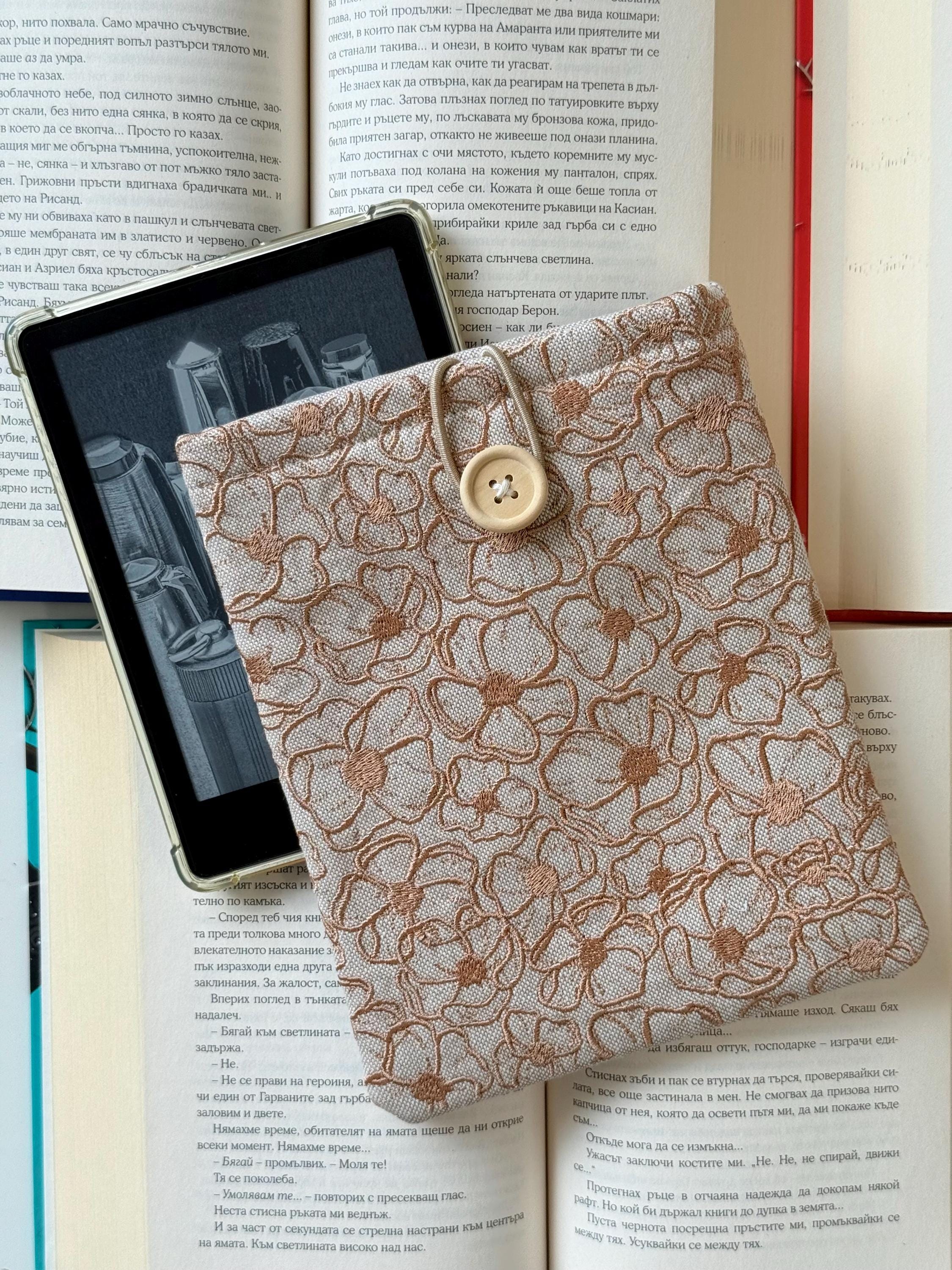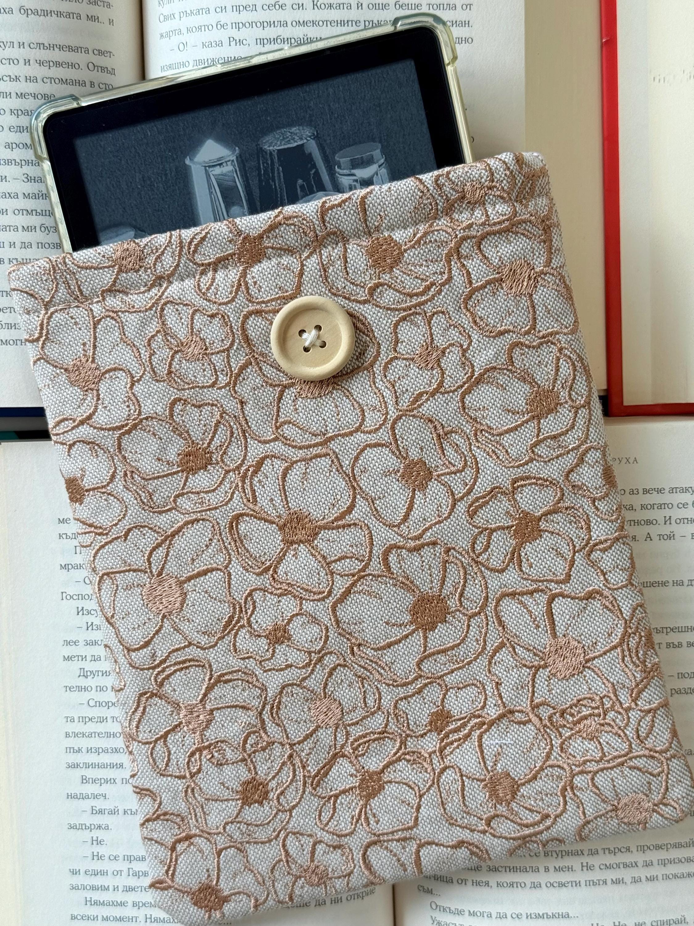 Protect your Kindle in timeless elegance ✨ This handmade padded Kindle sleeve features my own original embroidery design of copper and gold flowers, created exclusively for Lullaby Crafts World. Both luxurious and functional, it keeps your Kindle or e-reader safe from scratches, dust, and everyday wear while adding a touch of floral sophistication.