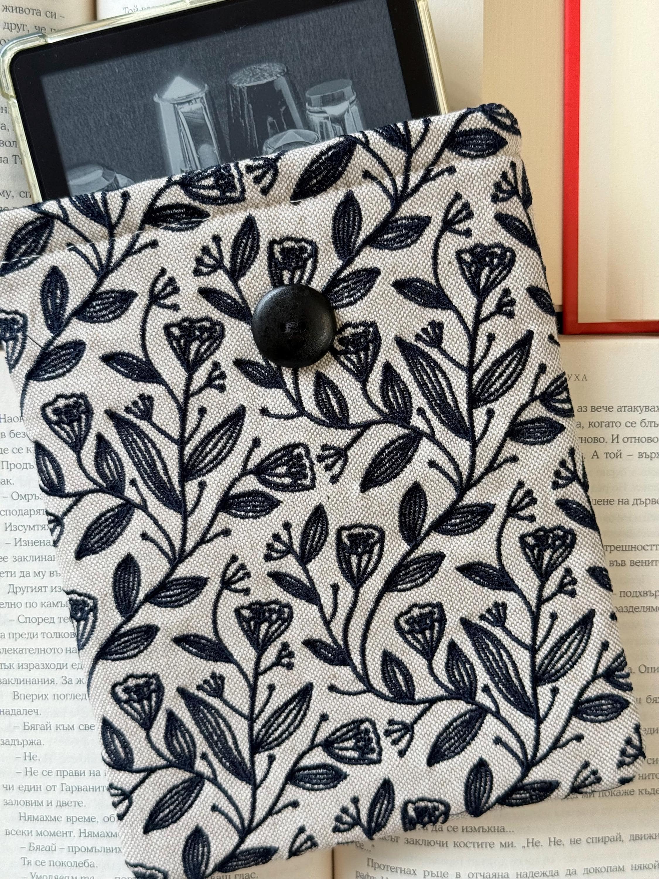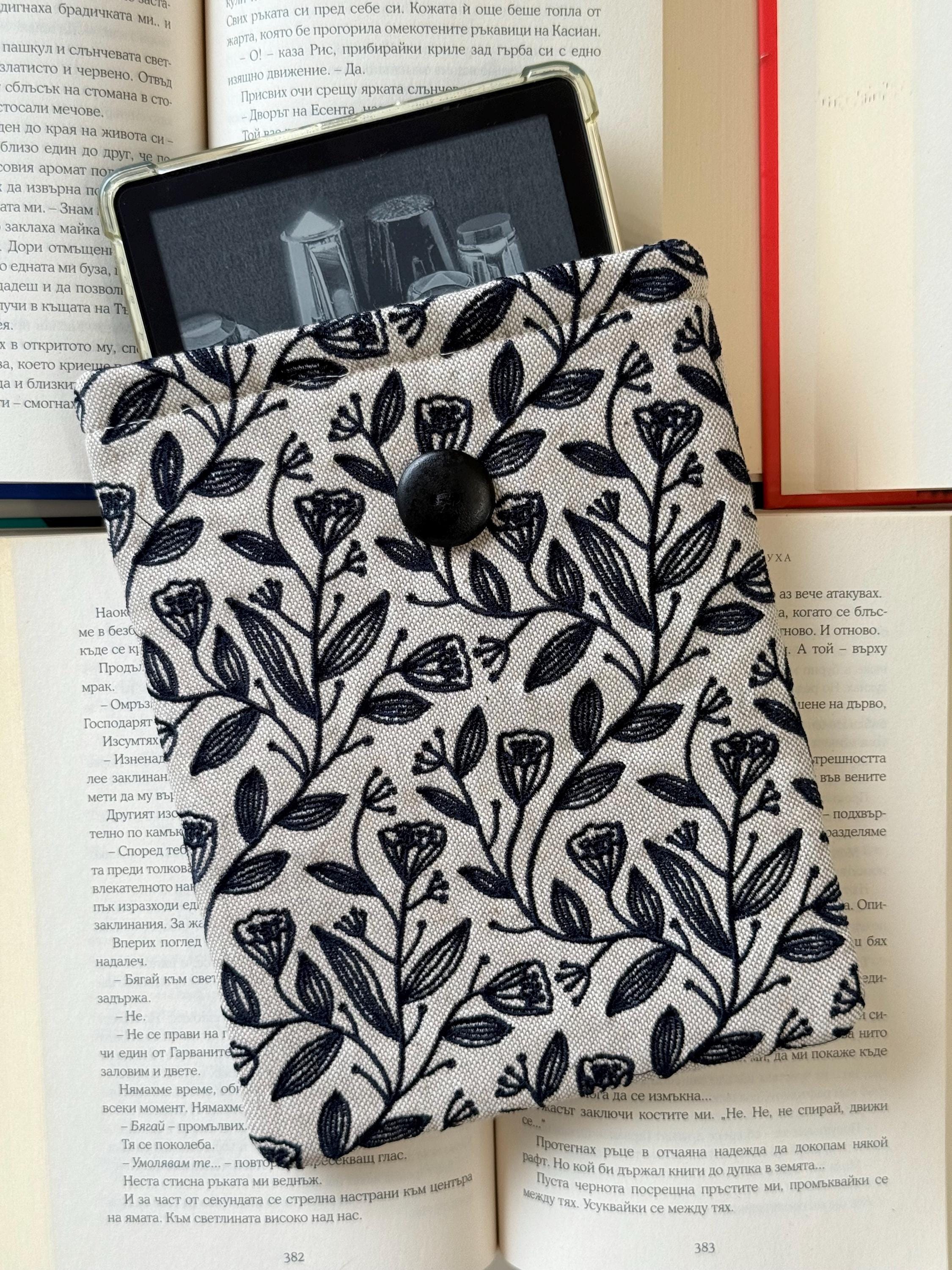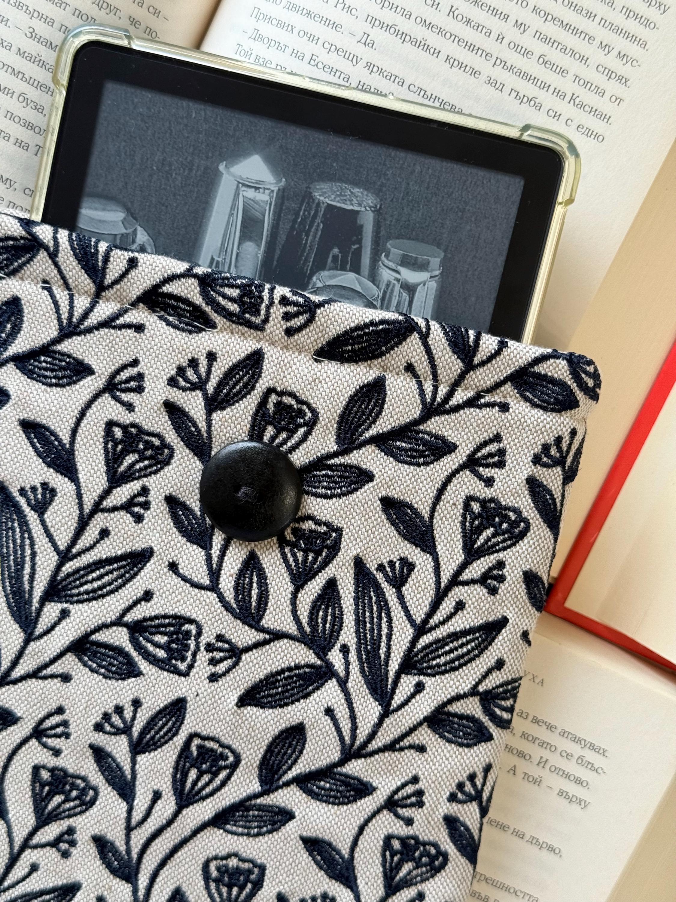 Protect your stories in style 🌸 This handmade padded Kindle sleeve features my own embroidery design of floral patterns, created exclusively for Lullaby Crafts World. Unique and elegant, it keeps your Kindle or e-reader safe from scratches and dust while adding a touch of floral charm.