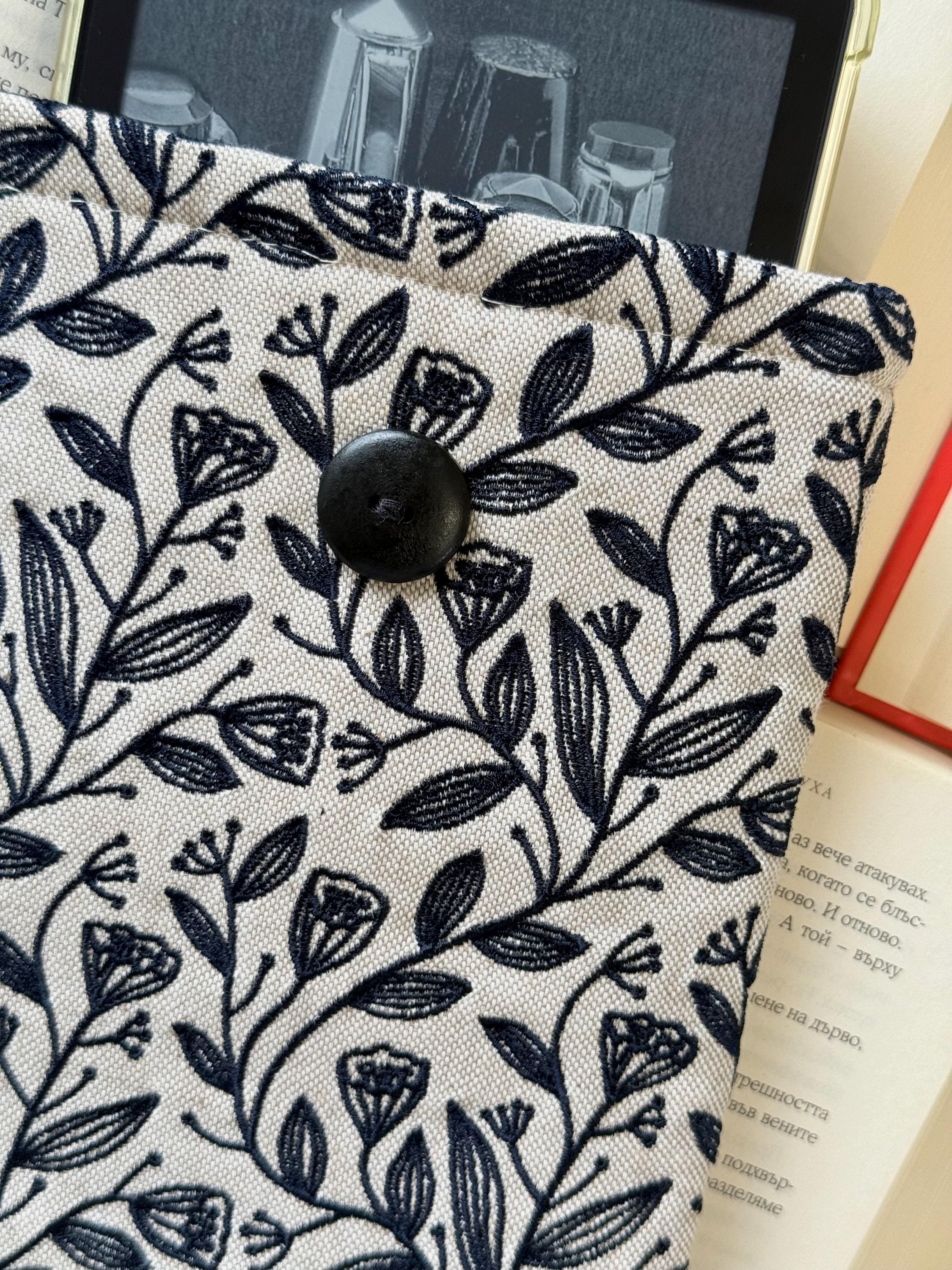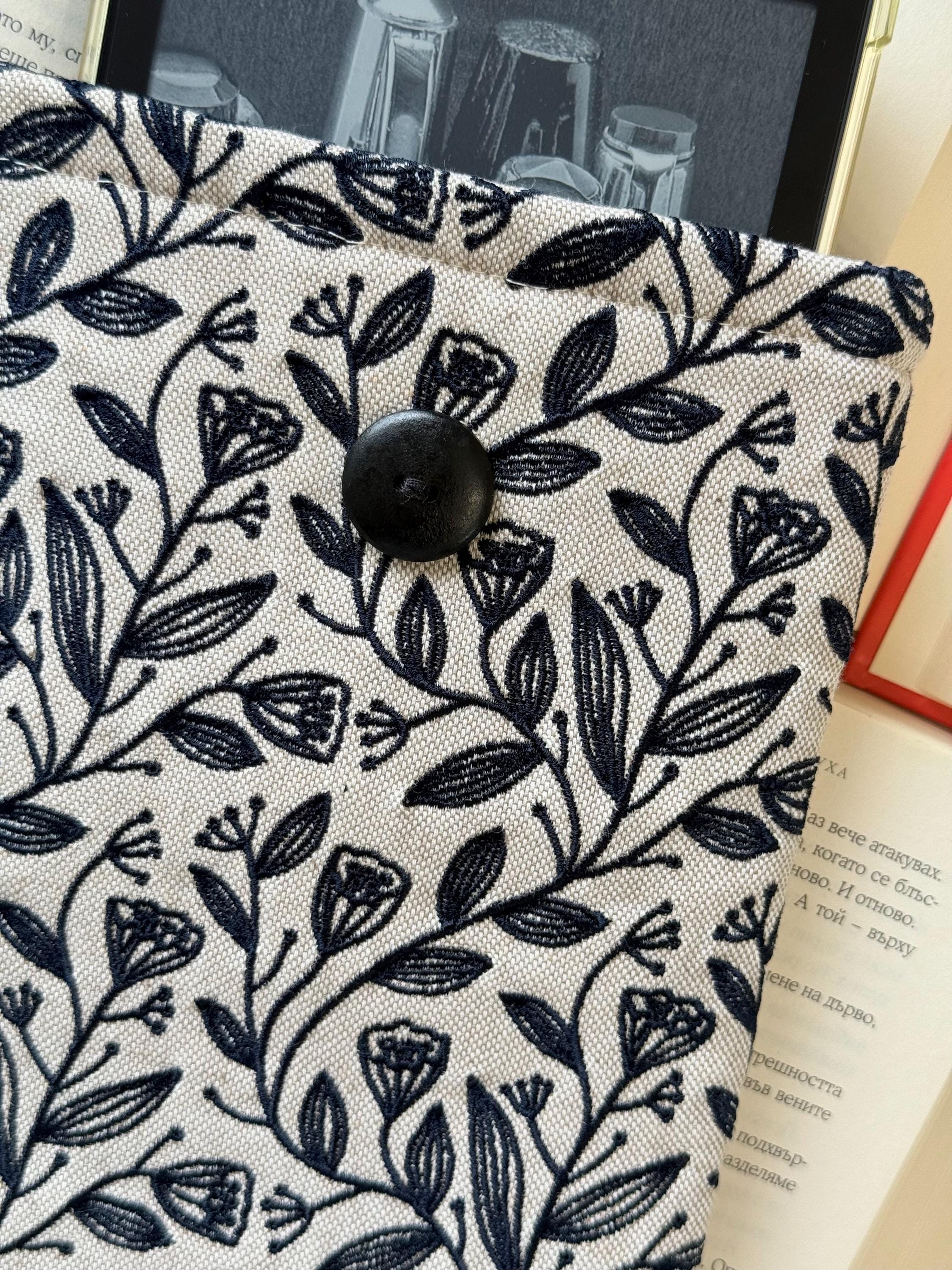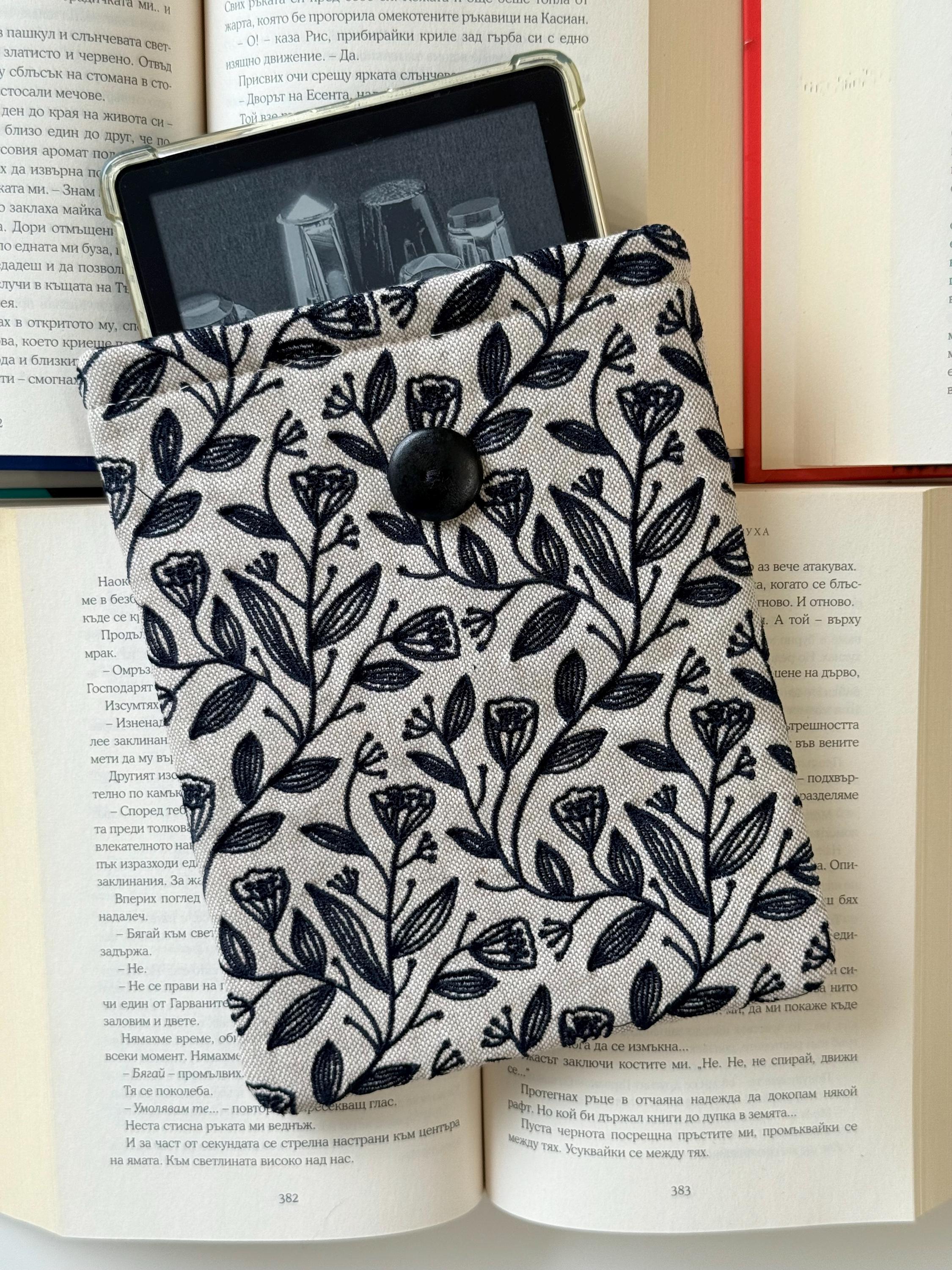Protect your stories in style 🌸 This handmade padded Kindle sleeve features my own embroidery design of floral patterns, created exclusively for Lullaby Crafts World. Unique and elegant, it keeps your Kindle or e-reader safe from scratches and dust while adding a touch of floral charm.