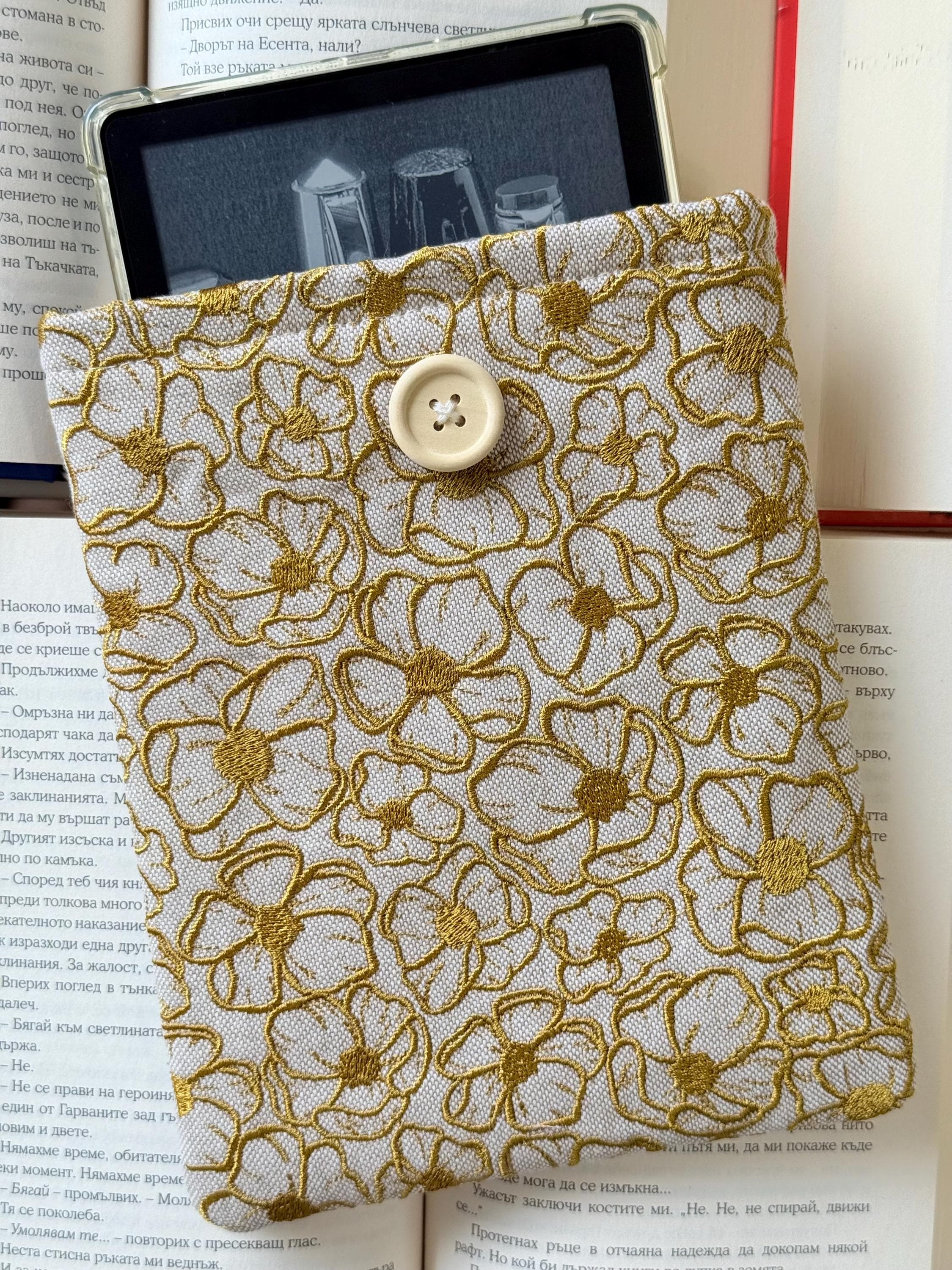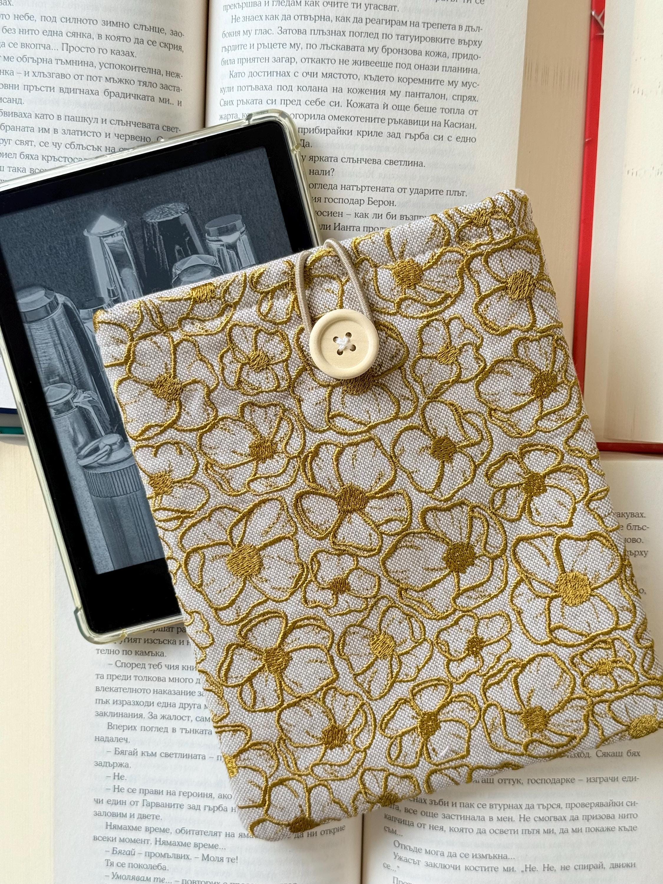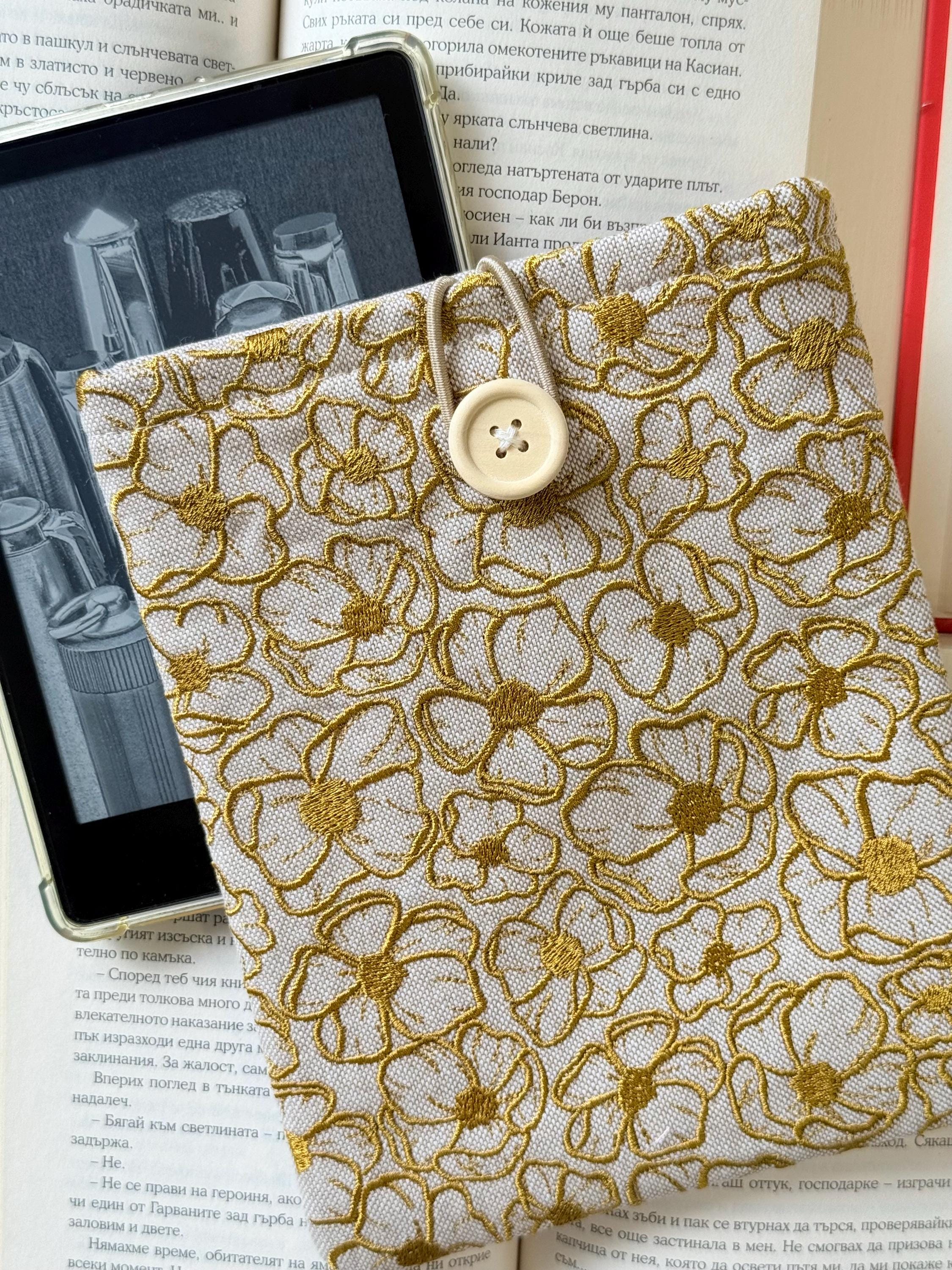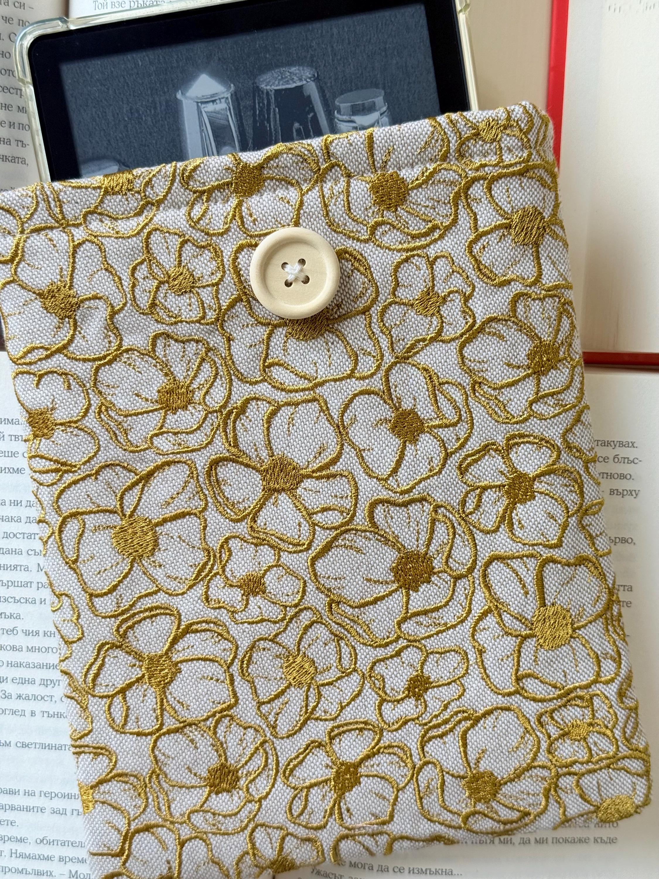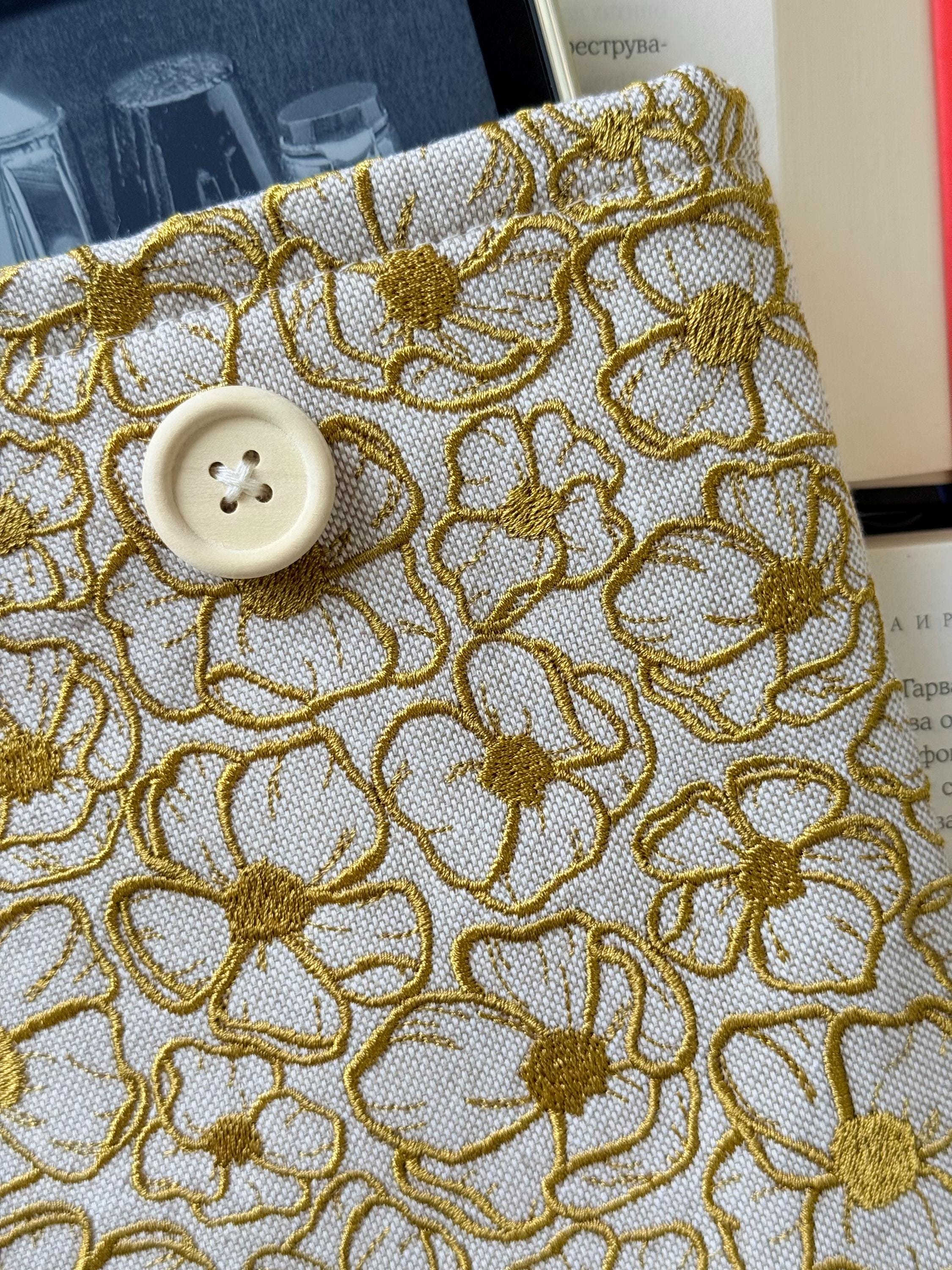 Gold Embroidery Flowers Padded Kindle Sleeve – Handmade Original Design by Lullaby Crafts World