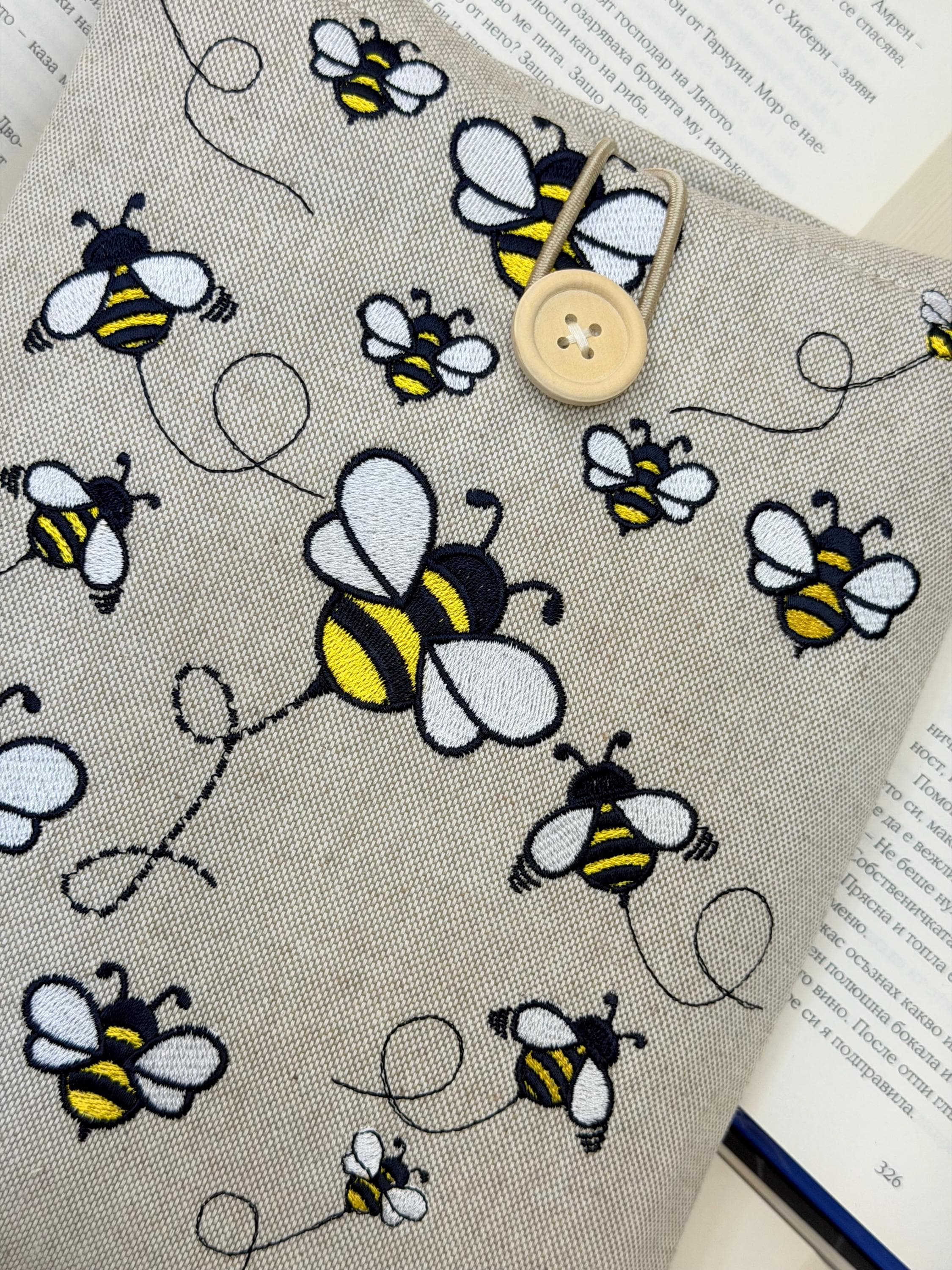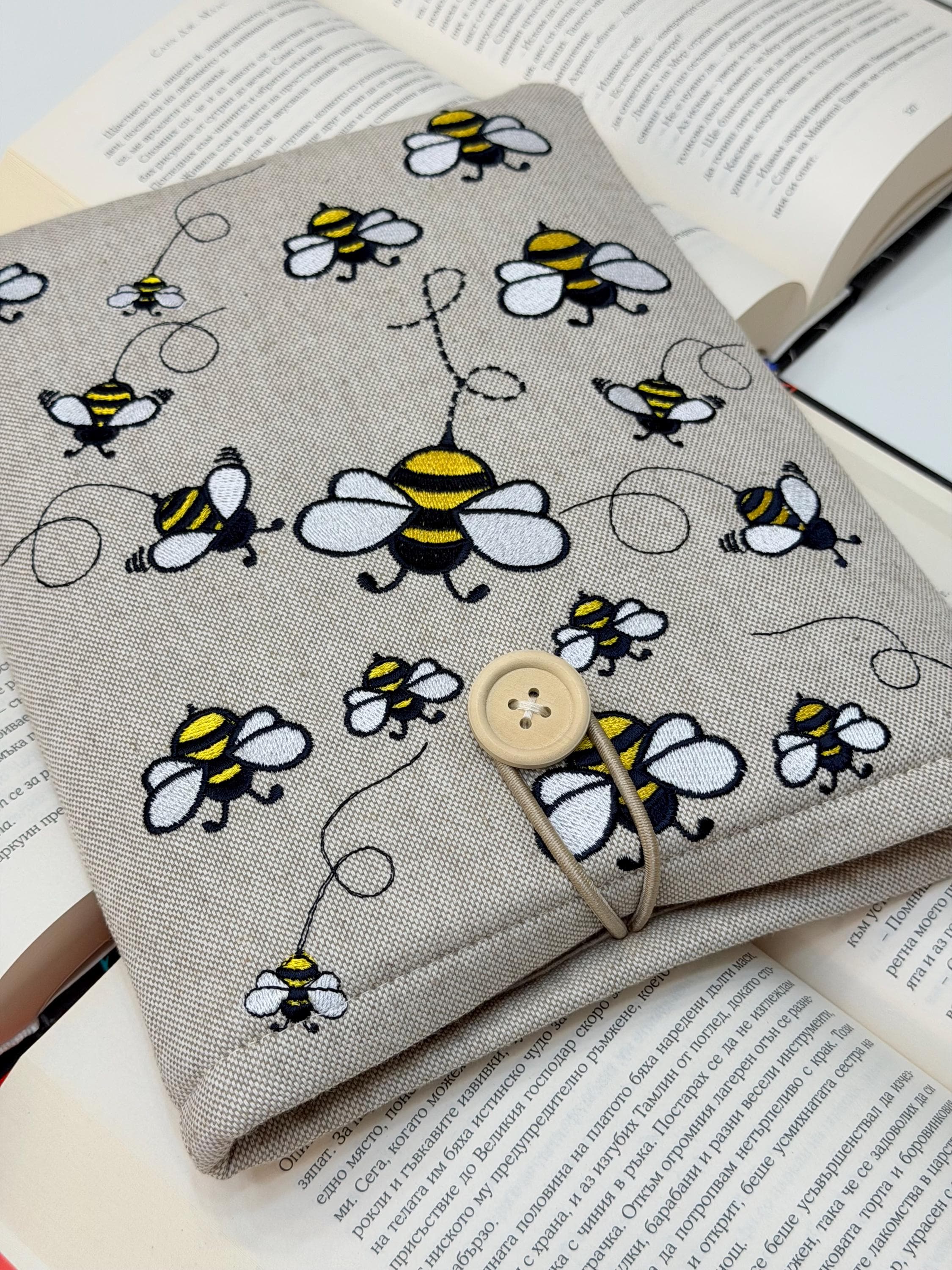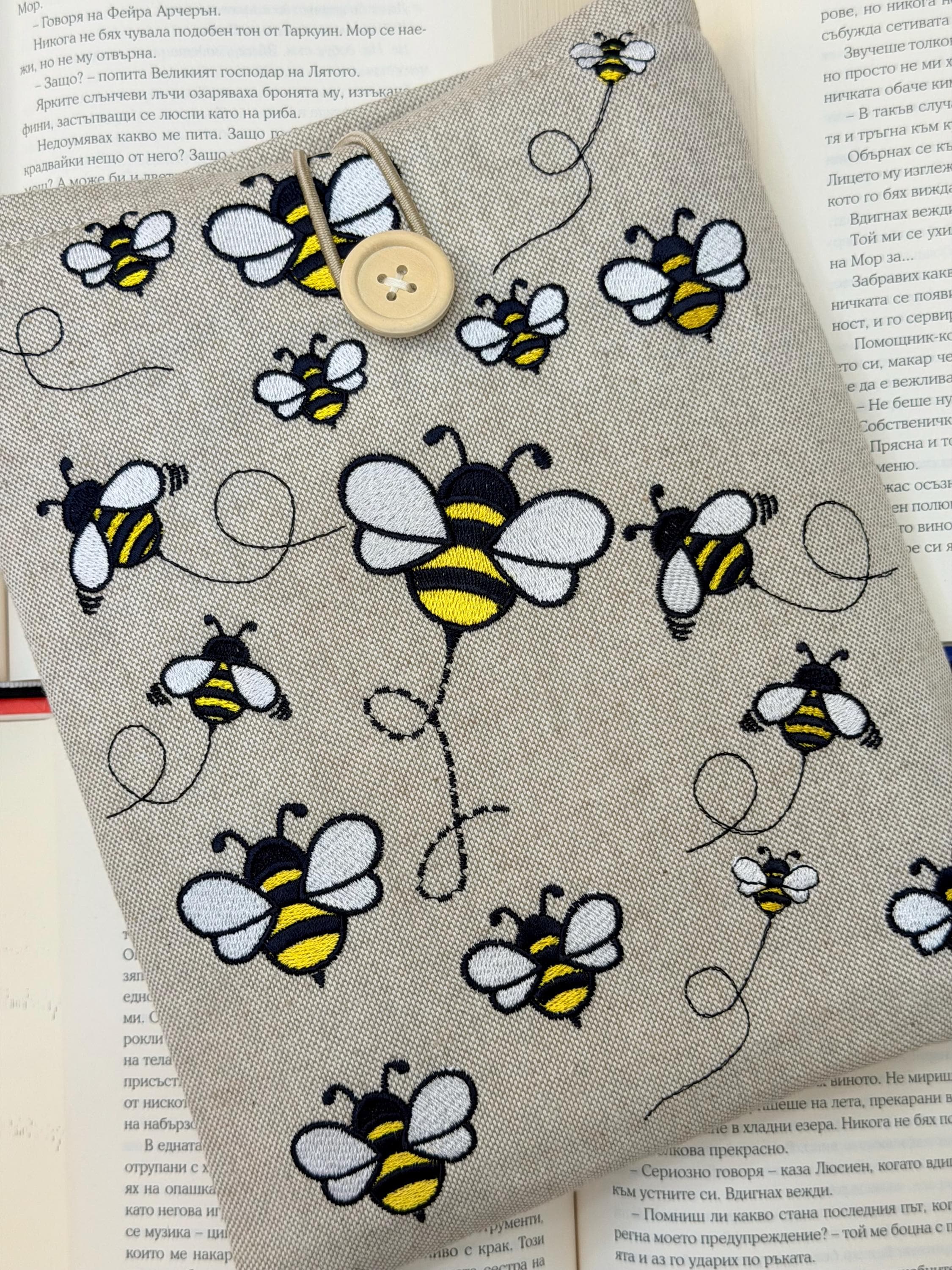 Bee Embroidery Padded Book Sleeve β Handmade Original Design by Lullaby Crafts World