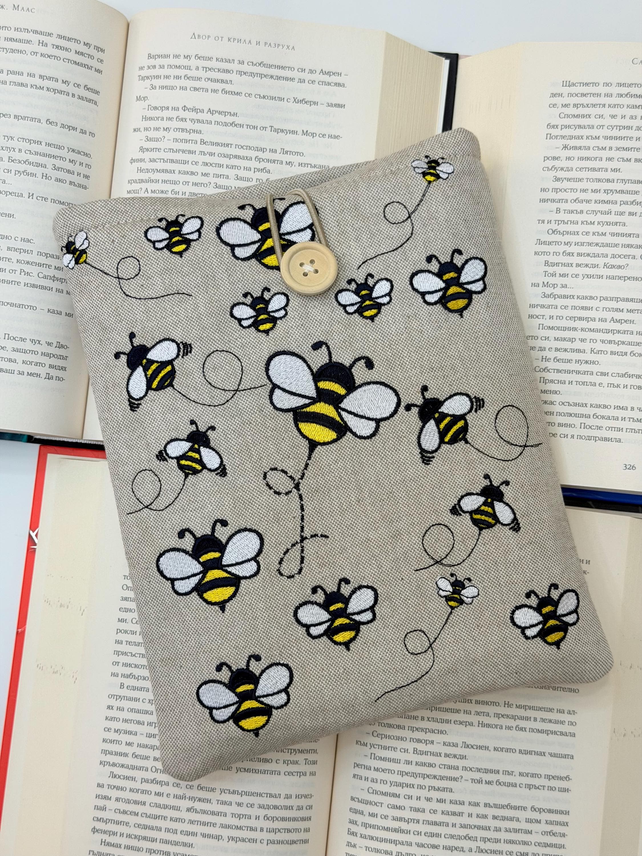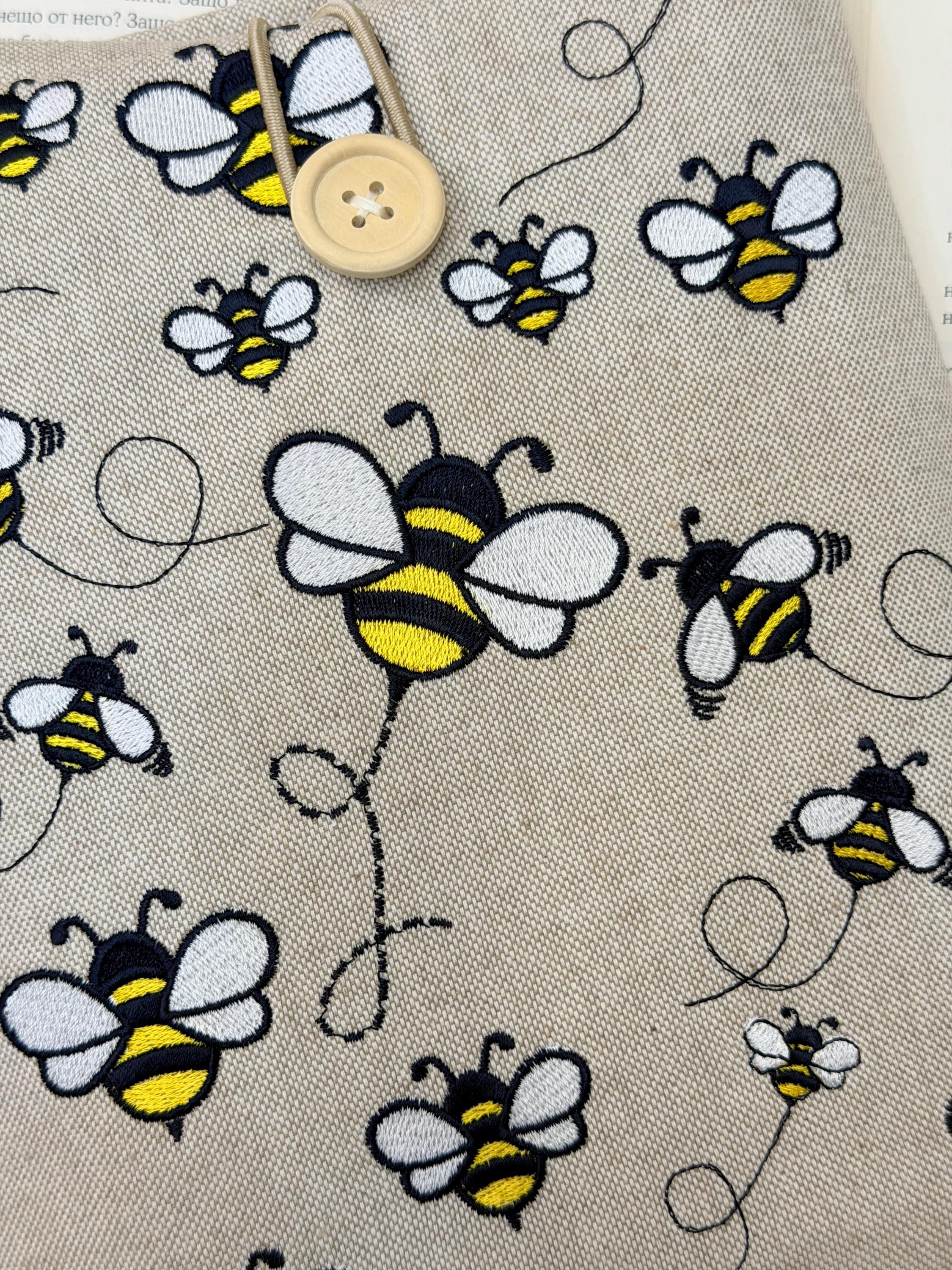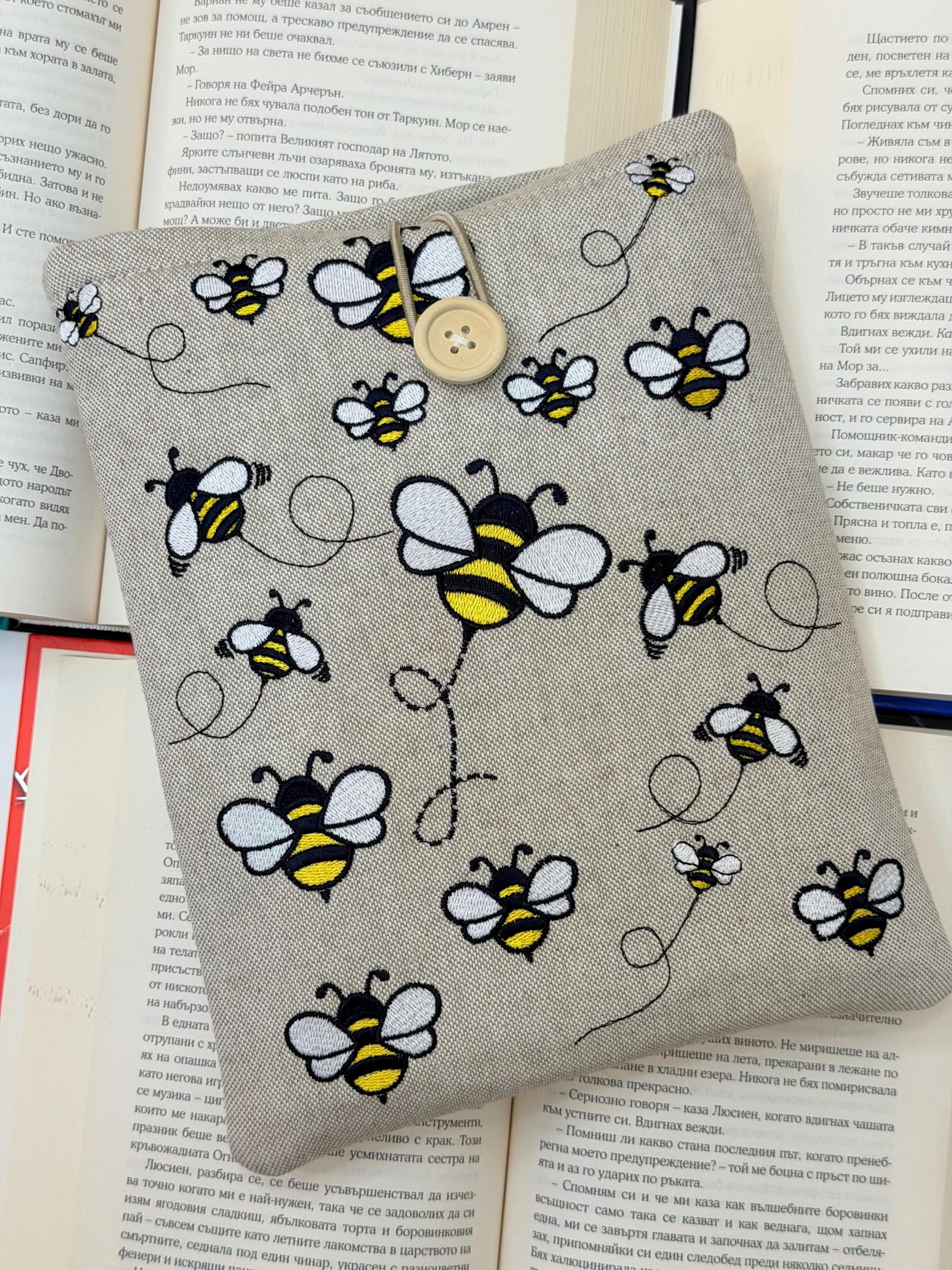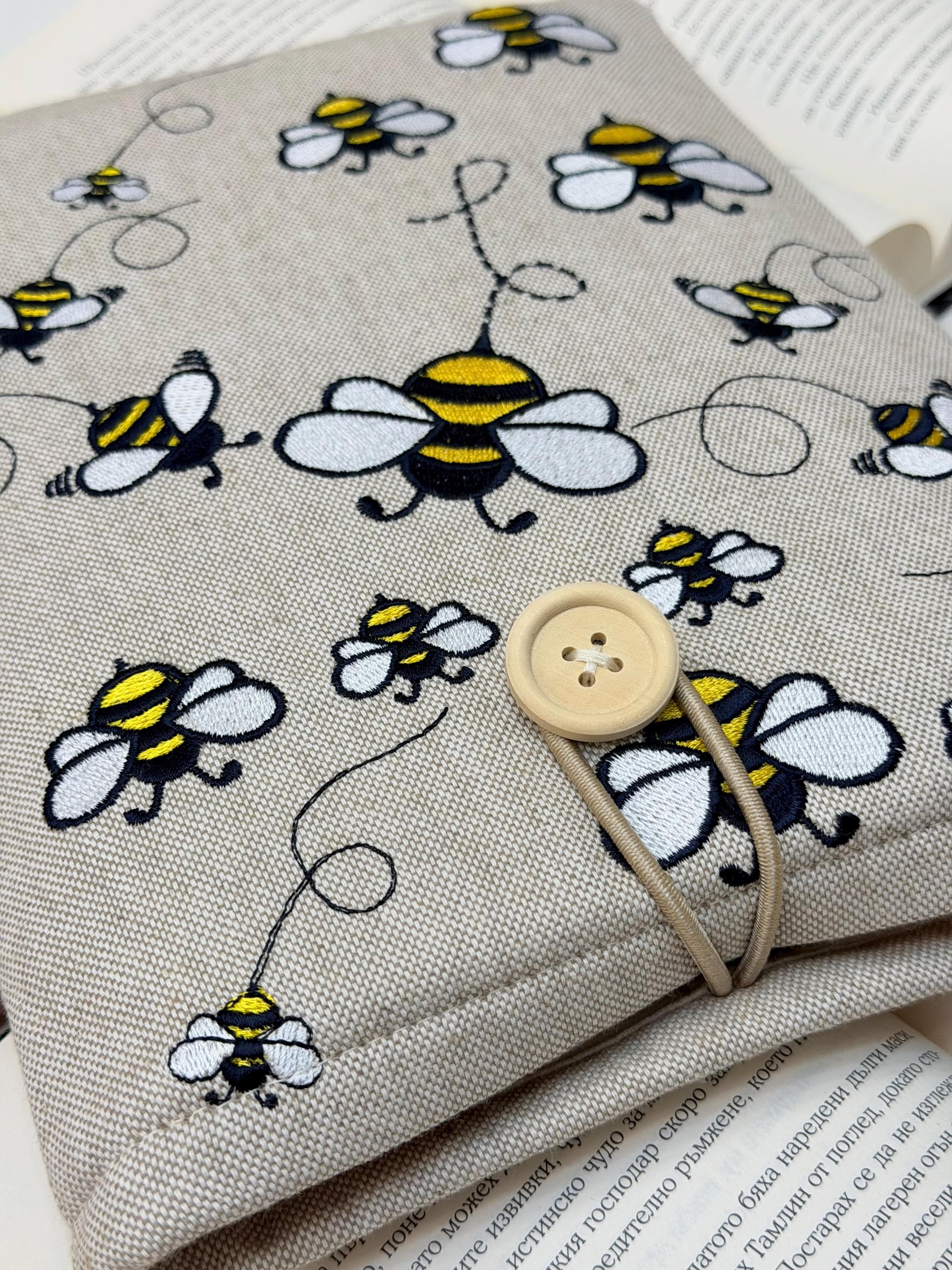 Bee Embroidery Padded Book Sleeve β Handmade Original Design by Lullaby Crafts World