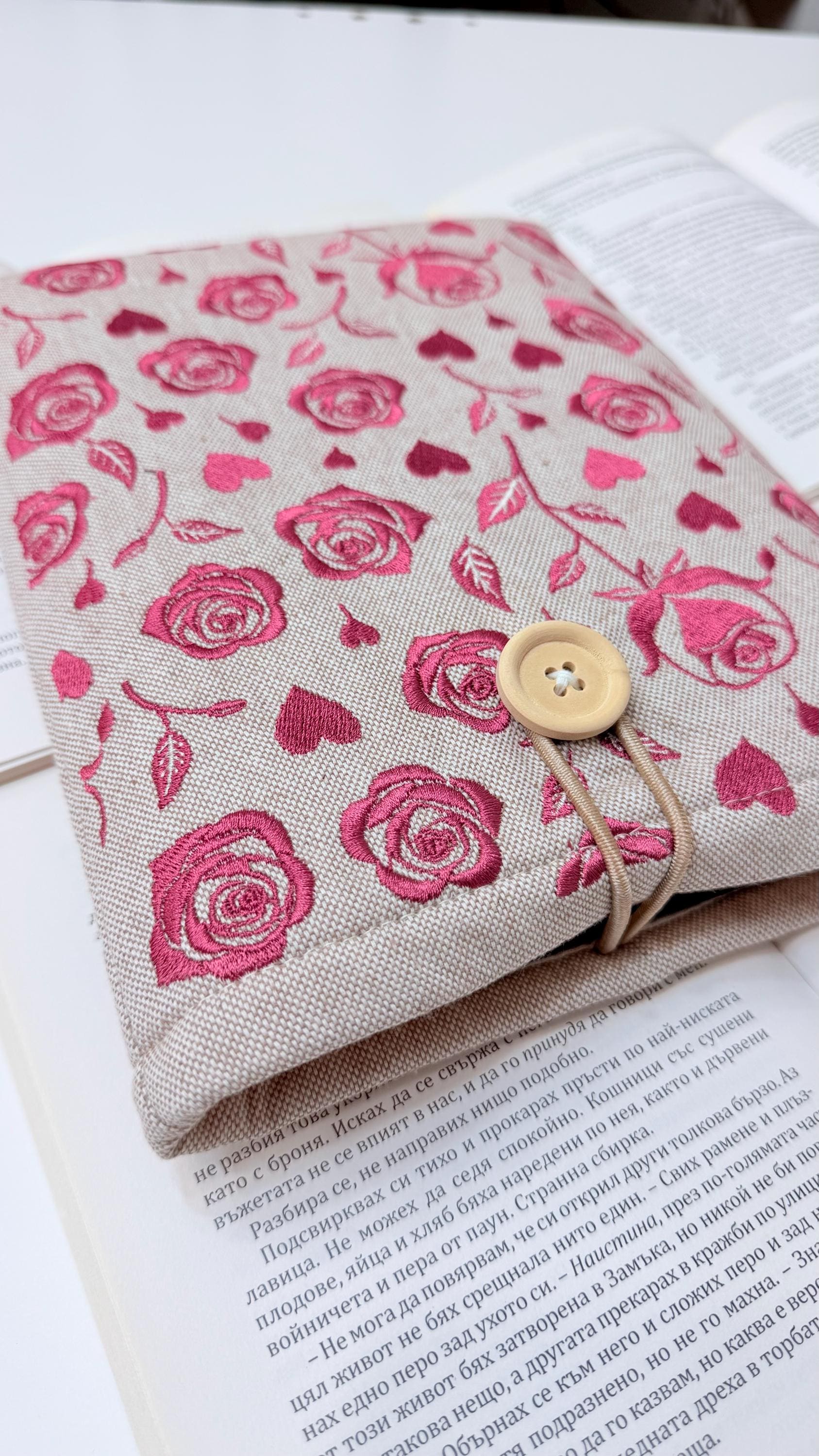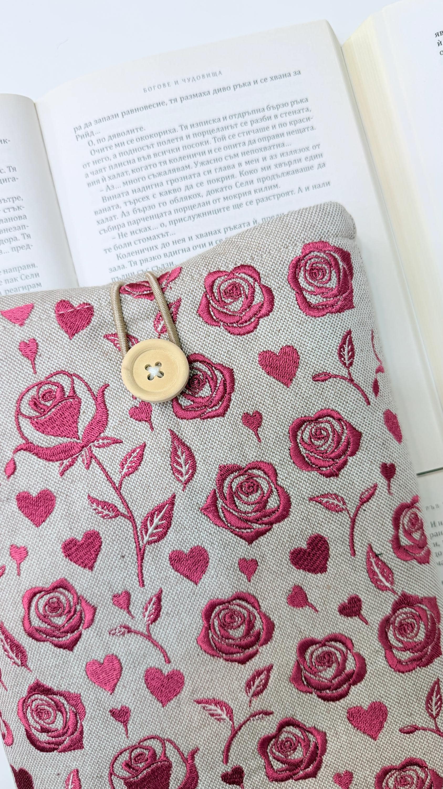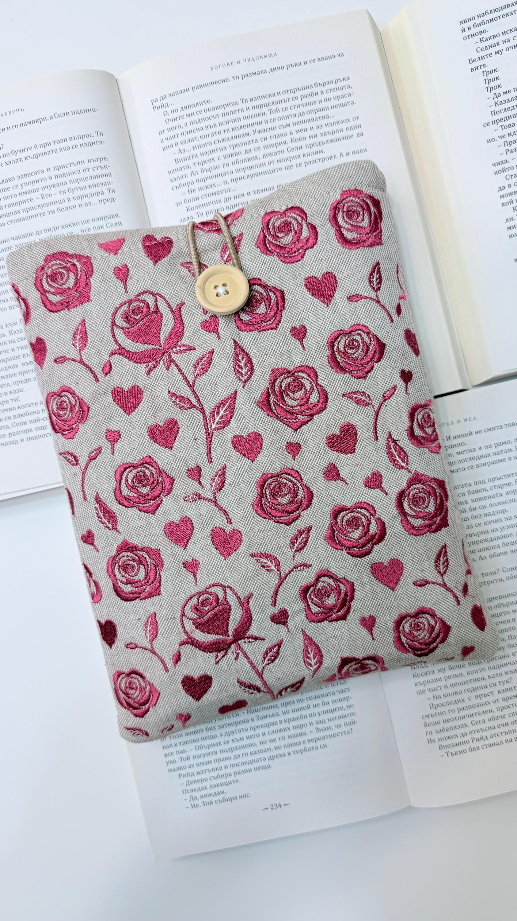 Burgundy Roses Embroidery Padded Book Sleeve – Handmade Original Design by Lullaby Crafts World