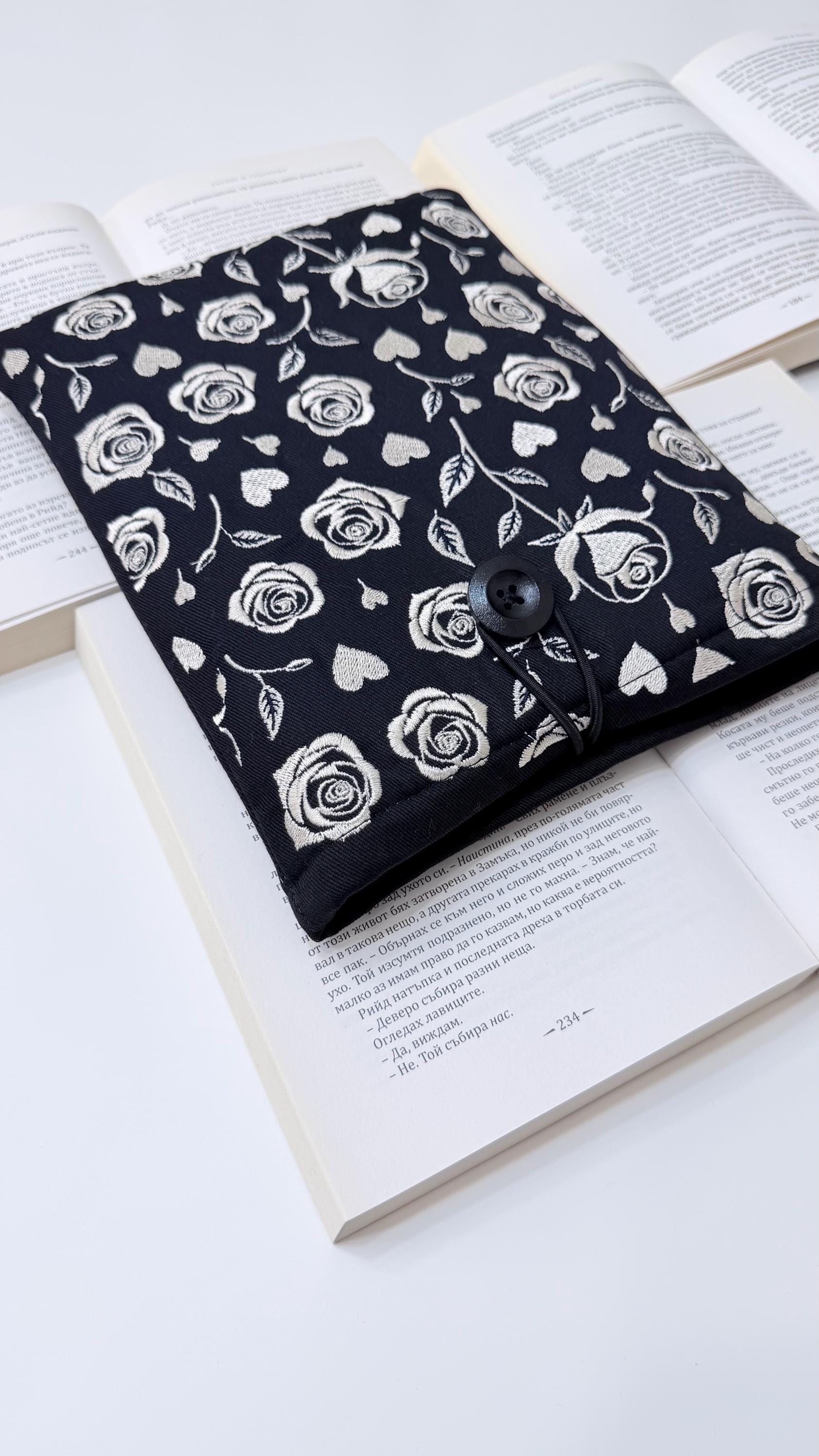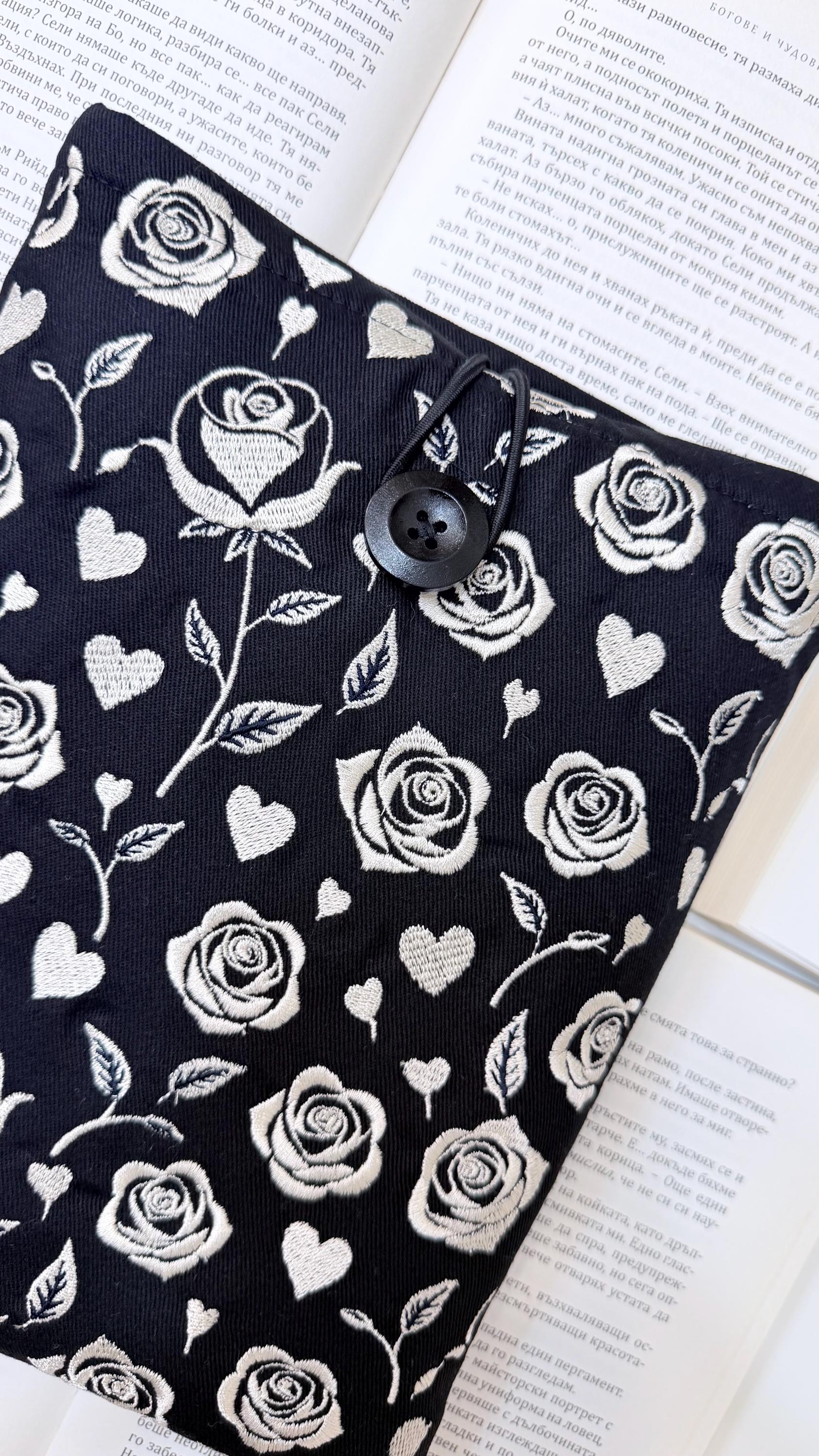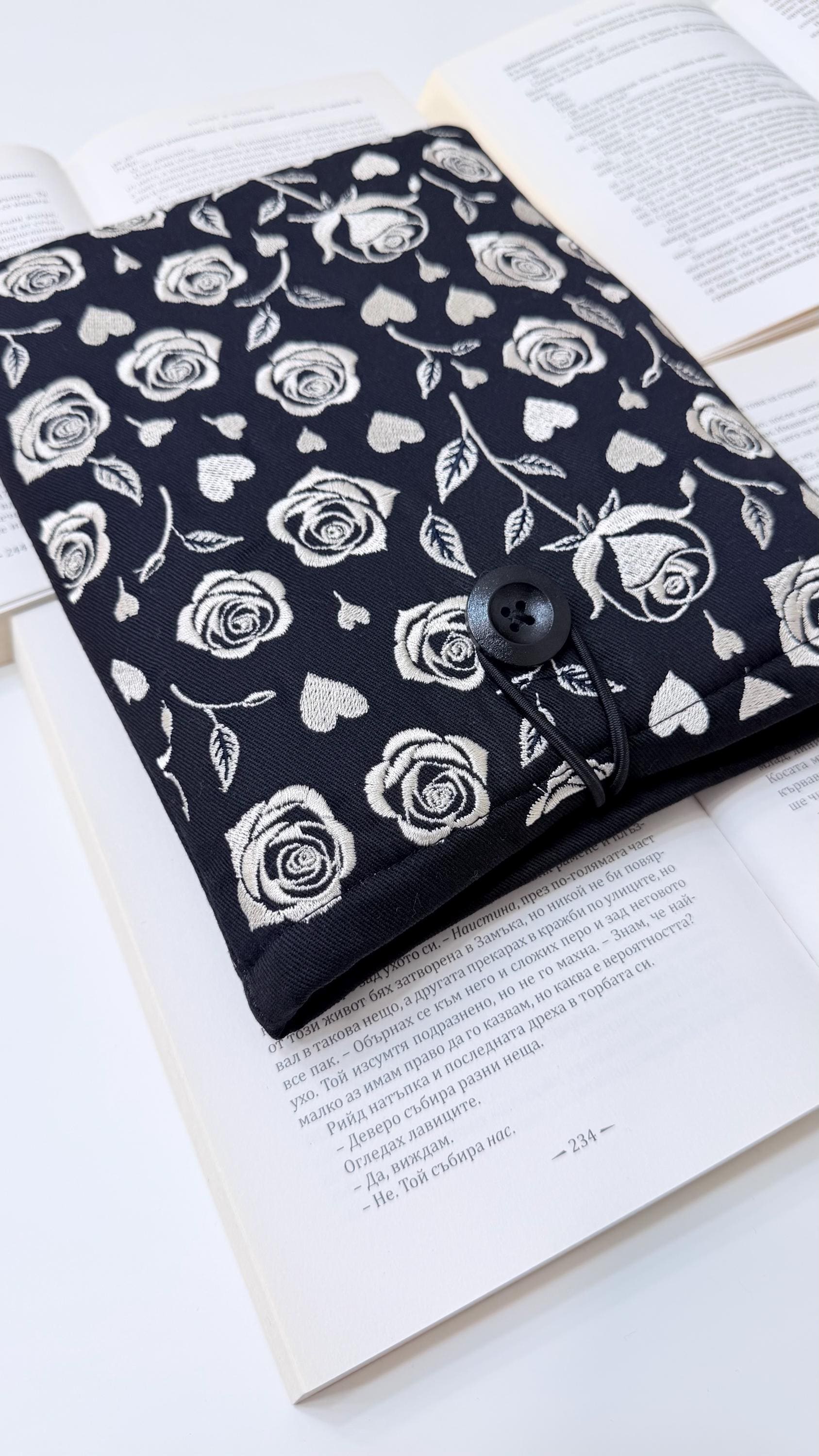 Wrap your books in elegance with a gothic twist 🥀 🖤 This handmade padded book sleeve is crafted with care and features my own embroidery design of beige roses, created exclusively for Lullaby Crafts World. Designed to protect your books from scratches, dust, and daily wear, it also adds a bold, stylish statement to your reading routine.