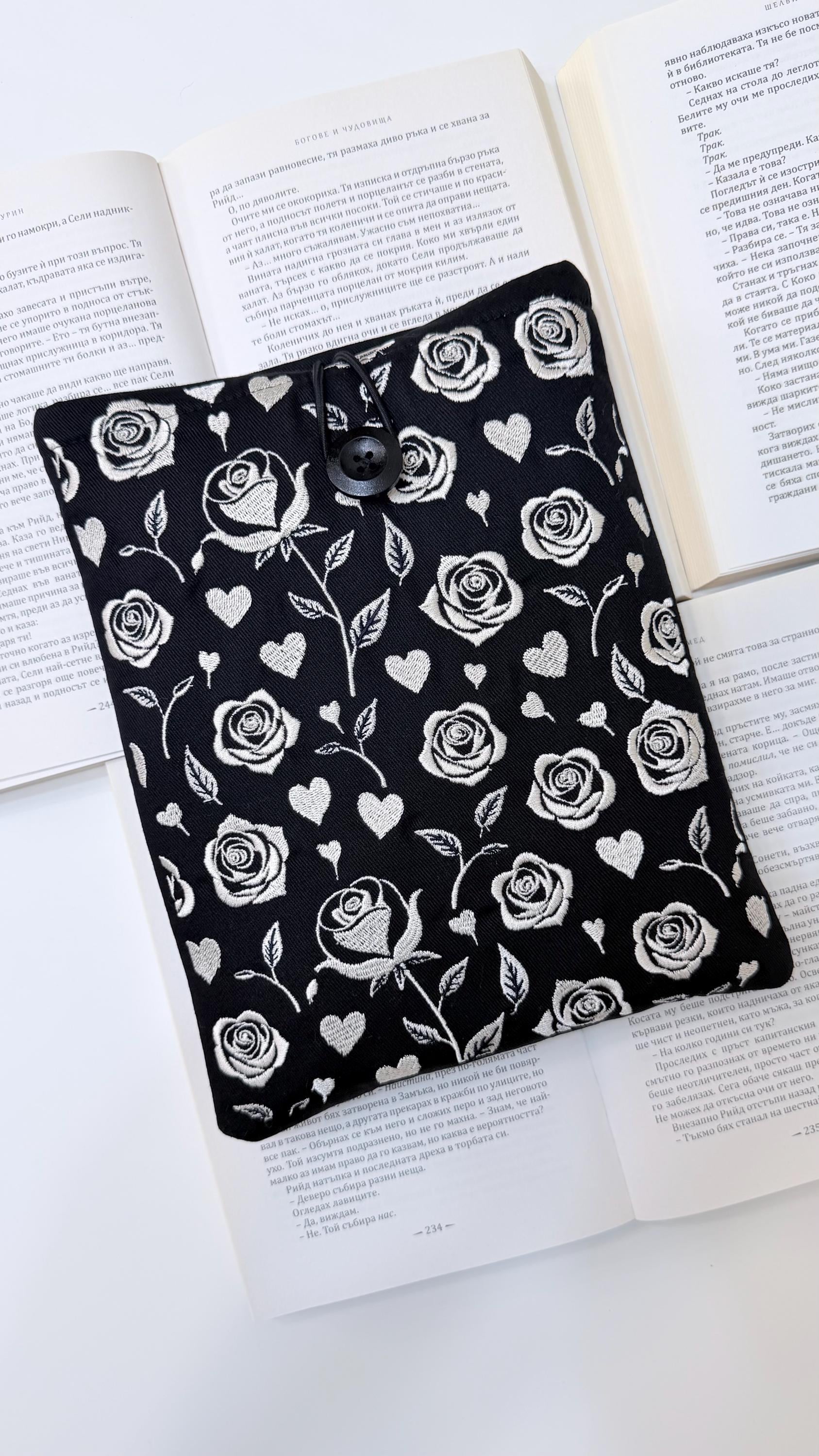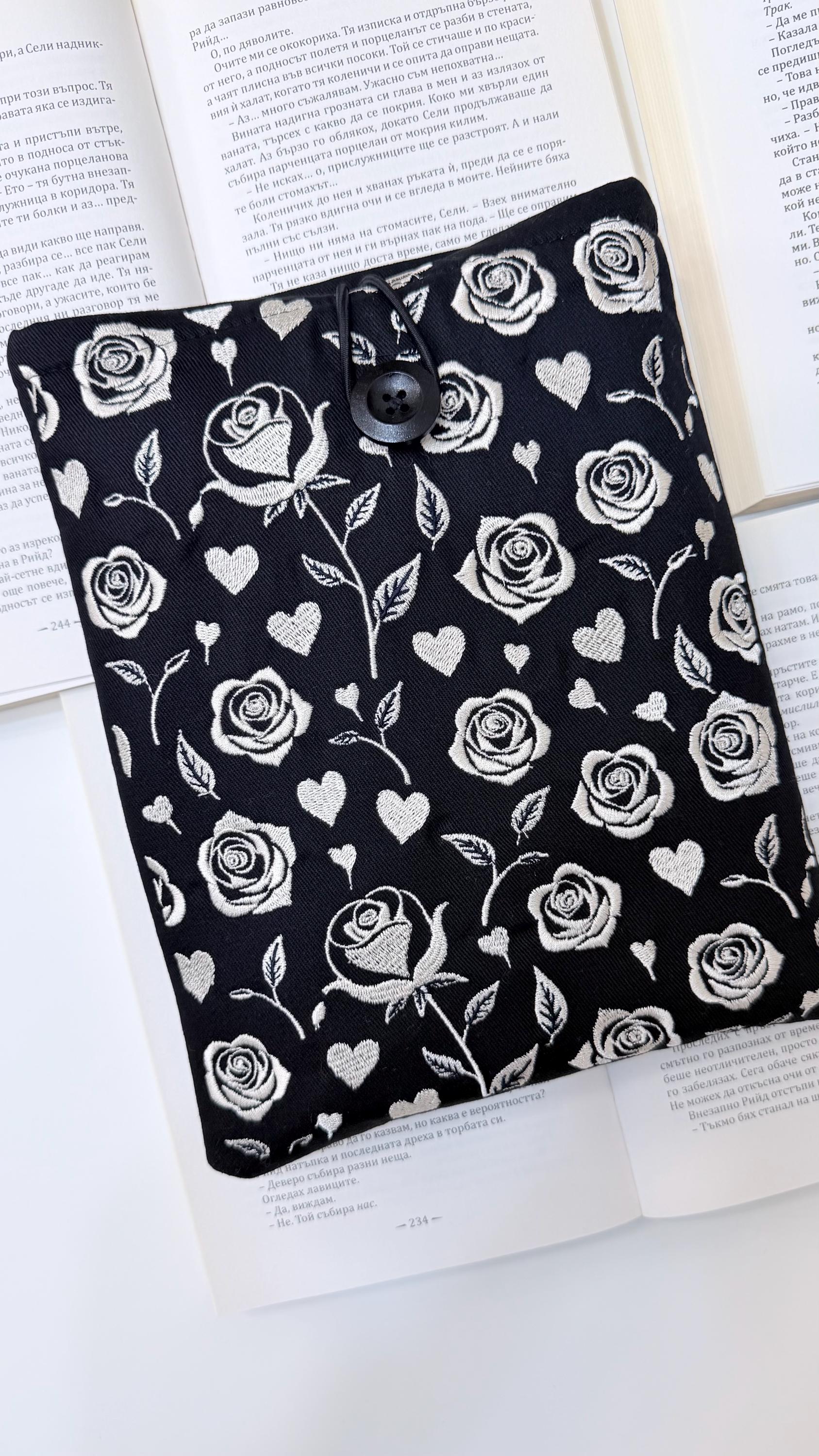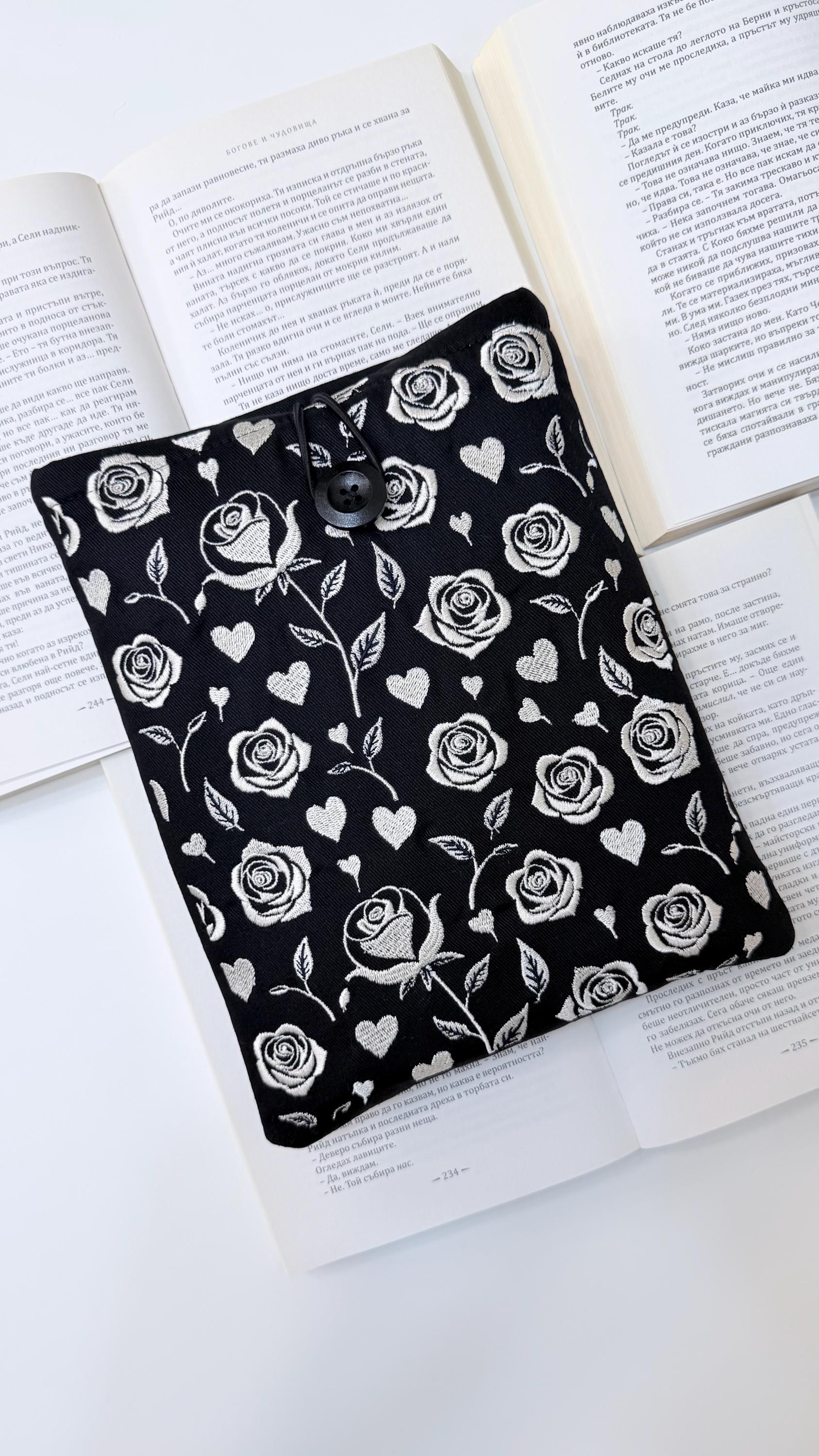 Wrap your books in elegance with a gothic twist 🥀 🖤 This handmade padded book sleeve is crafted with care and features my own embroidery design of beige roses, created exclusively for Lullaby Crafts World. Designed to protect your books from scratches, dust, and daily wear, it also adds a bold, stylish statement to your reading routine.