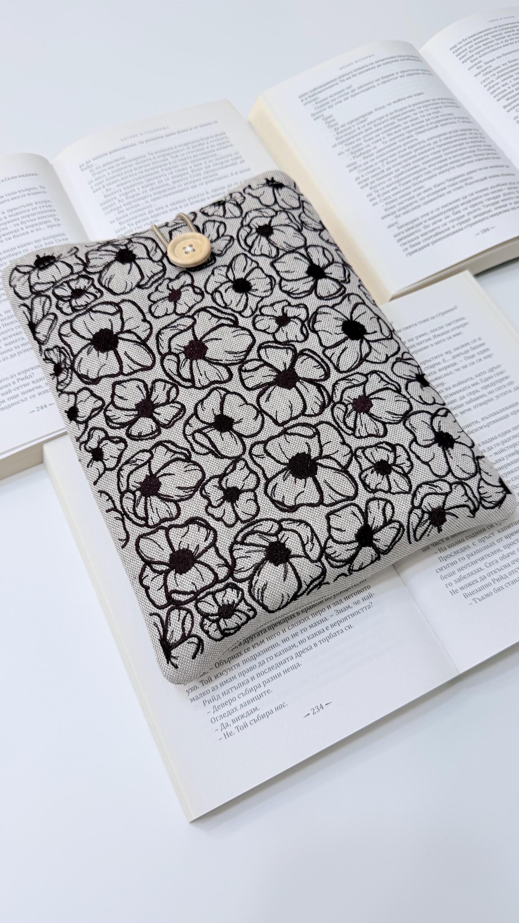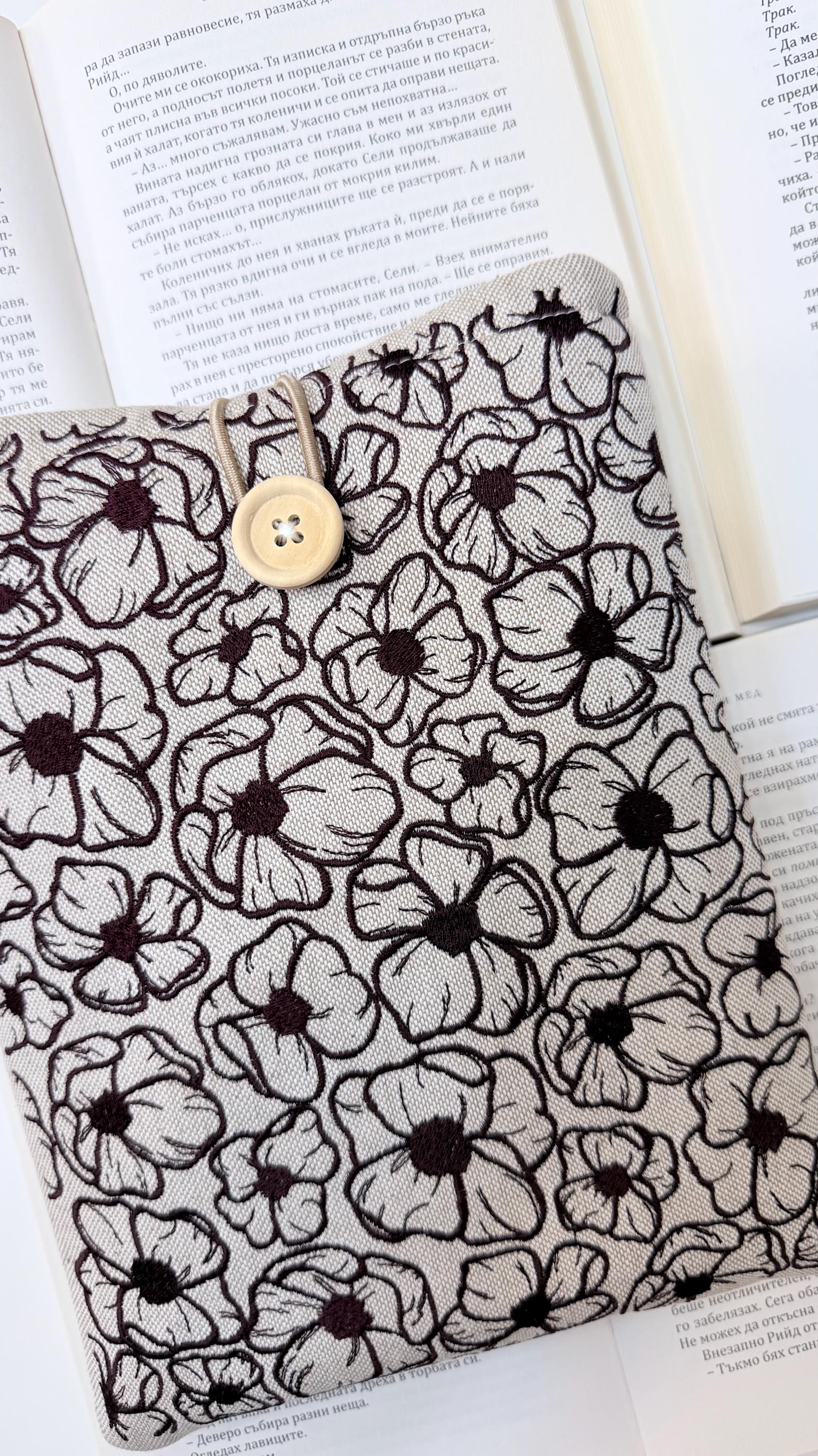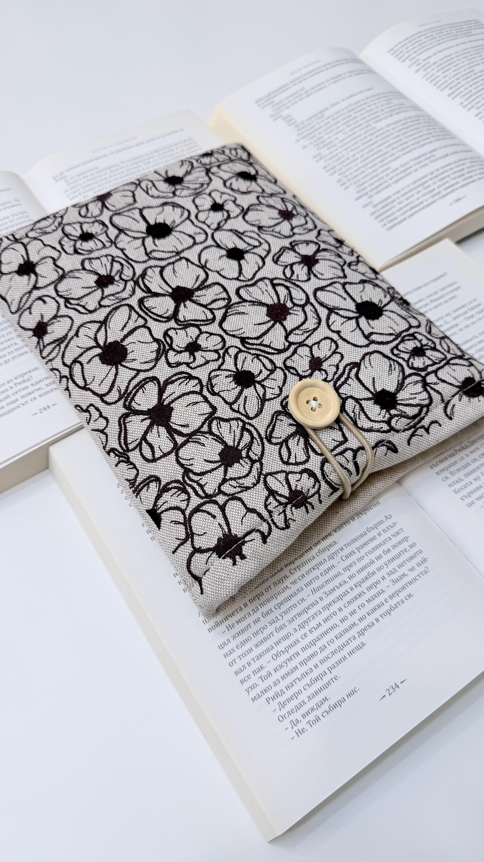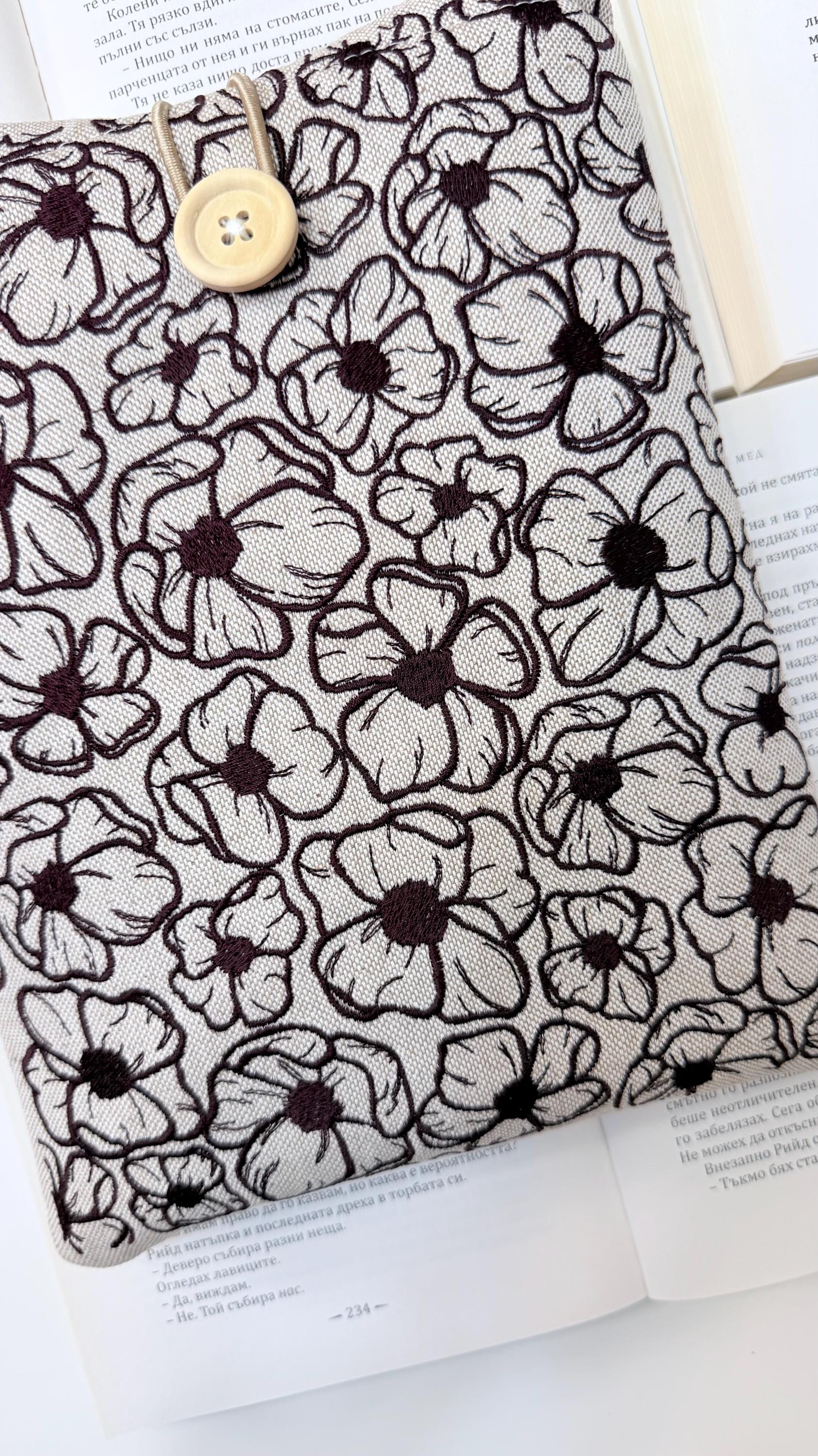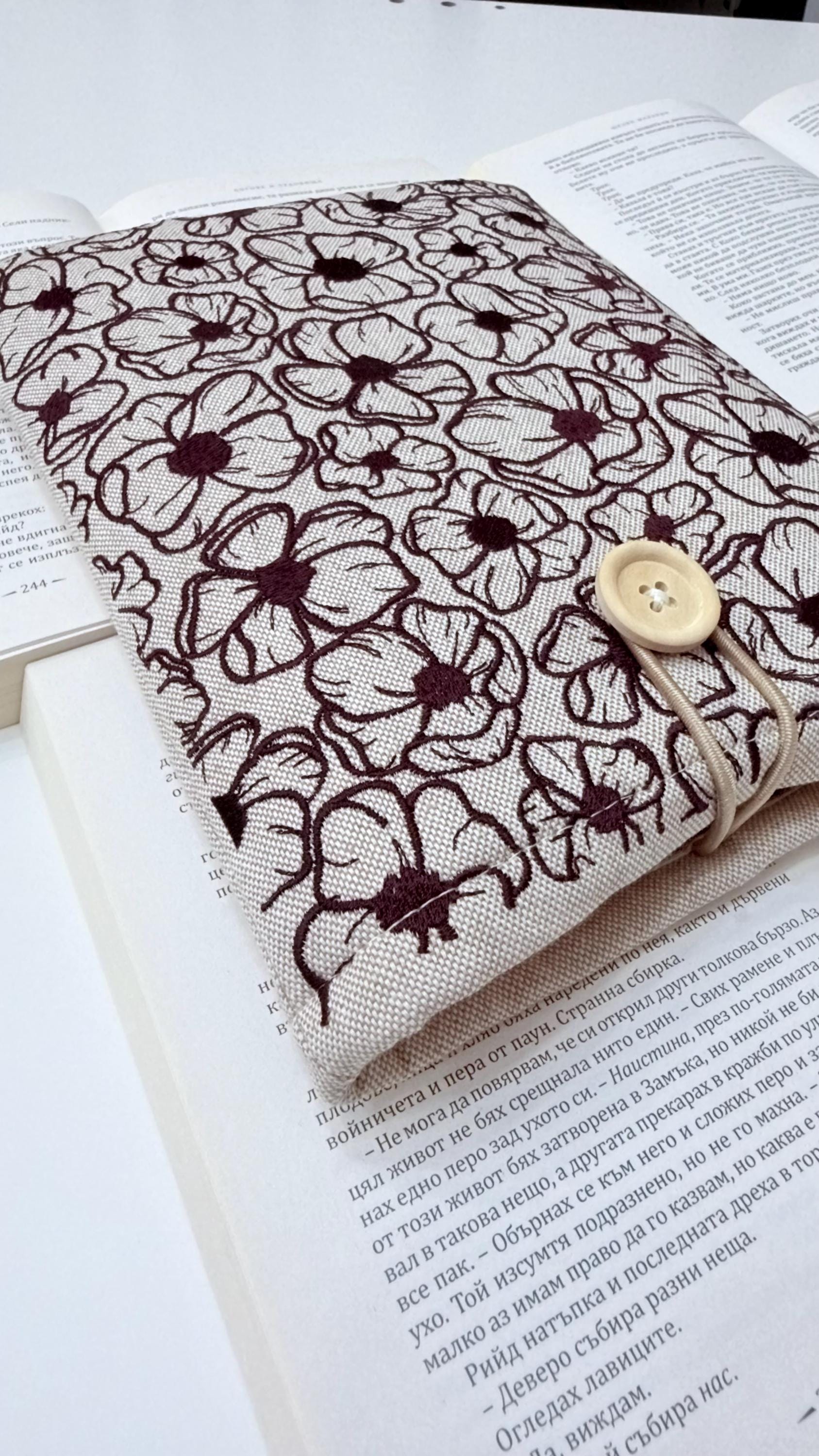 Wrap your favorite stories in elegance 🌹 This handmade padded book sleeve features my own original embroidery design of dark burgundy flowers, crafted exclusively for Lullaby Crafts World. Perfect for protecting your books from scratches, dust, and daily wear, while adding a romantic and sophisticated touch.