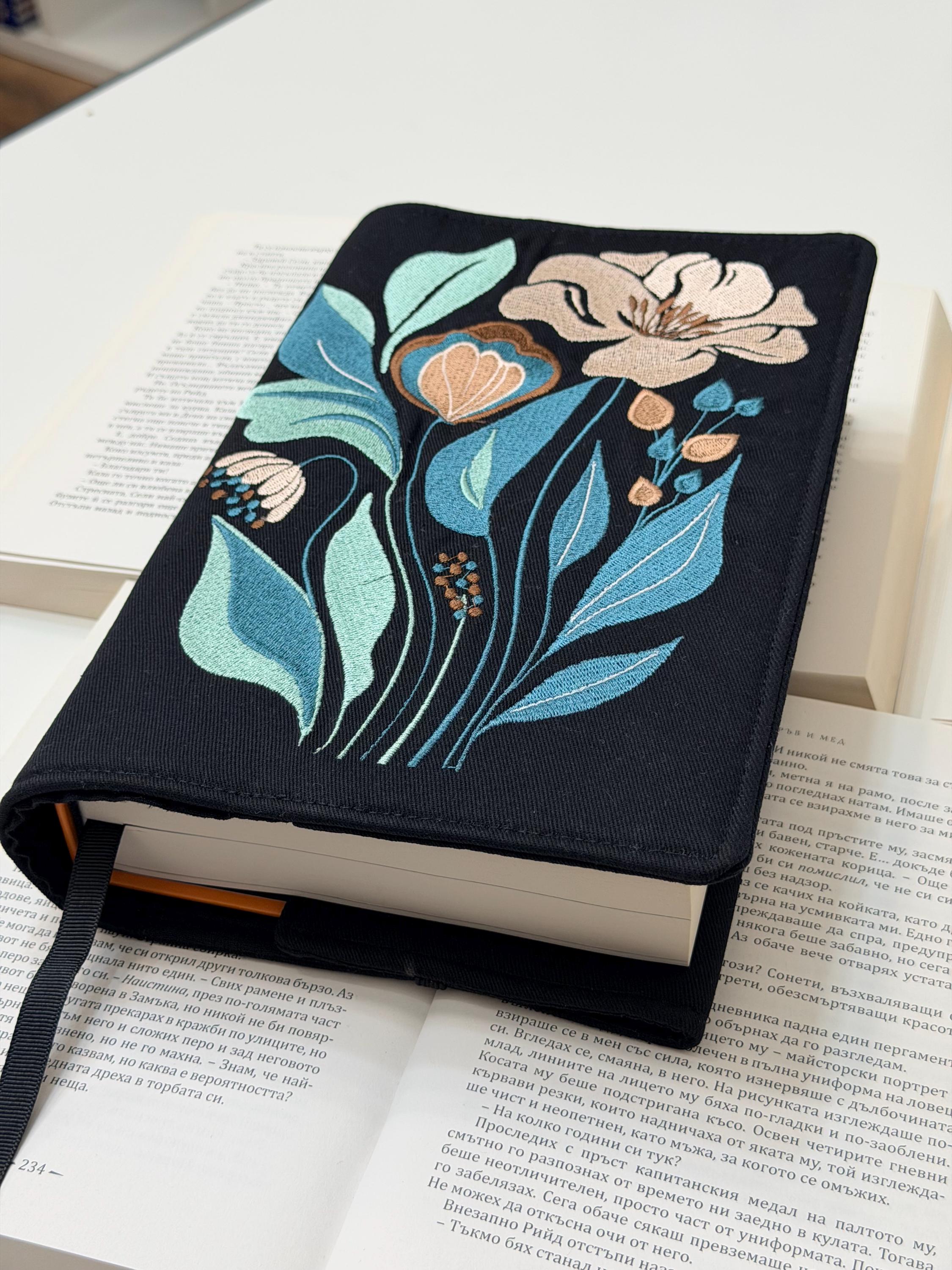 Wrap your books in floral elegance 🌸✨ This handmade adjustable book cover features my own original embroidery design of elegant flowers, created exclusively for Lullaby Crafts World. Designed to snugly fit hardcover books, it brings beauty, sophistication, and protection together in one timeless piece.