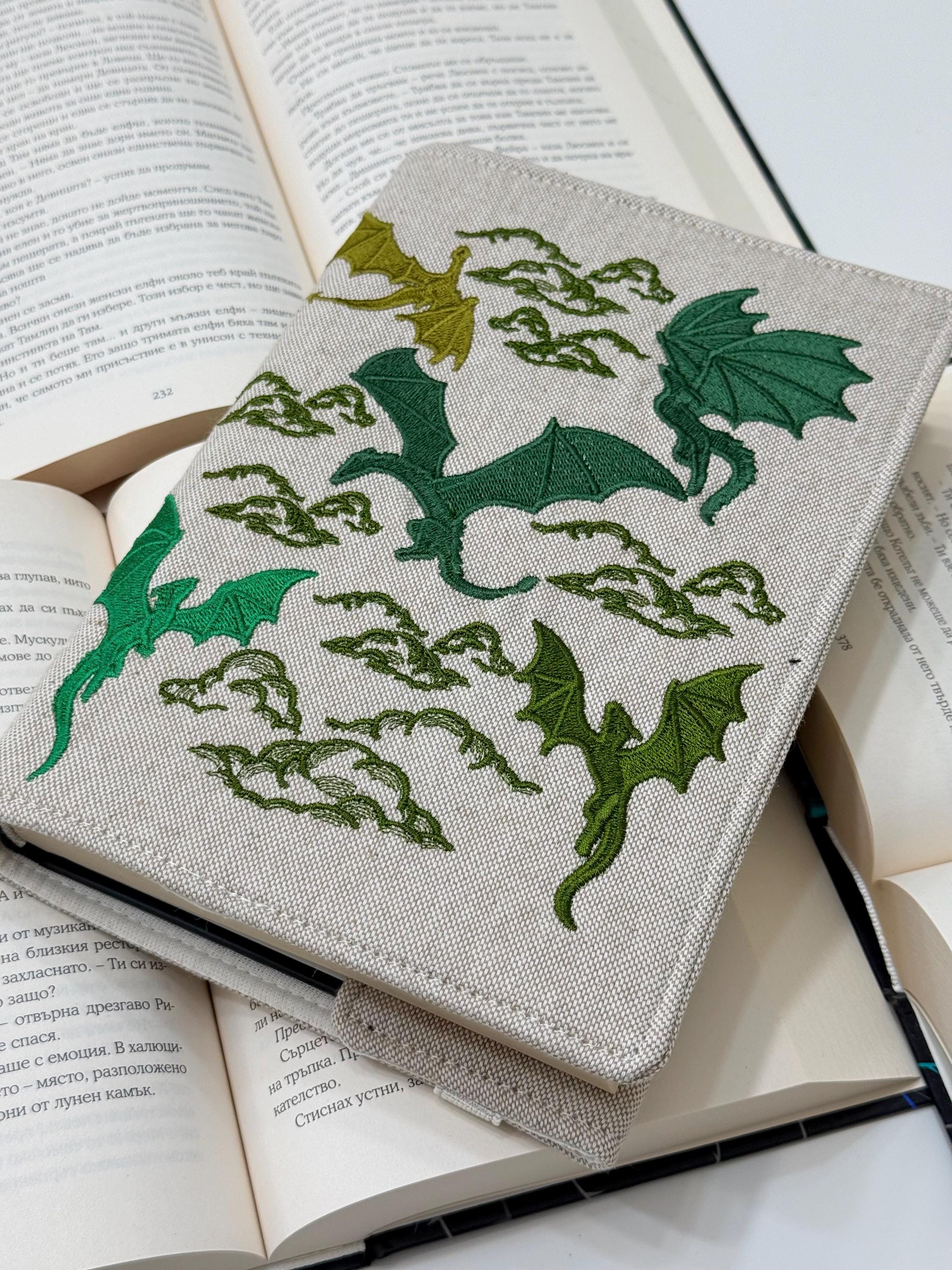 Embroidery Dragons Adjustable Book Cover – Handmade Original Design by Lullaby Crafts World