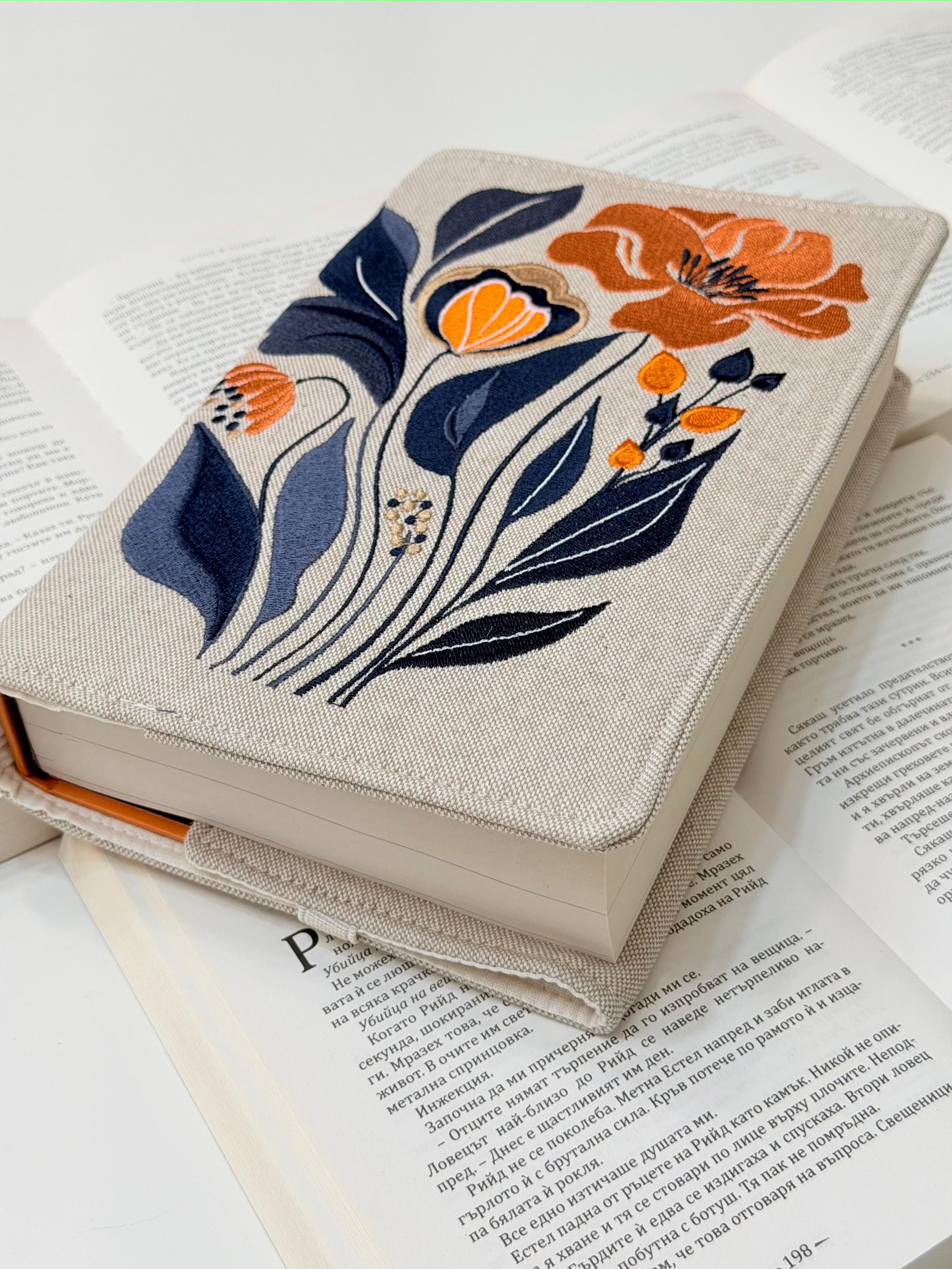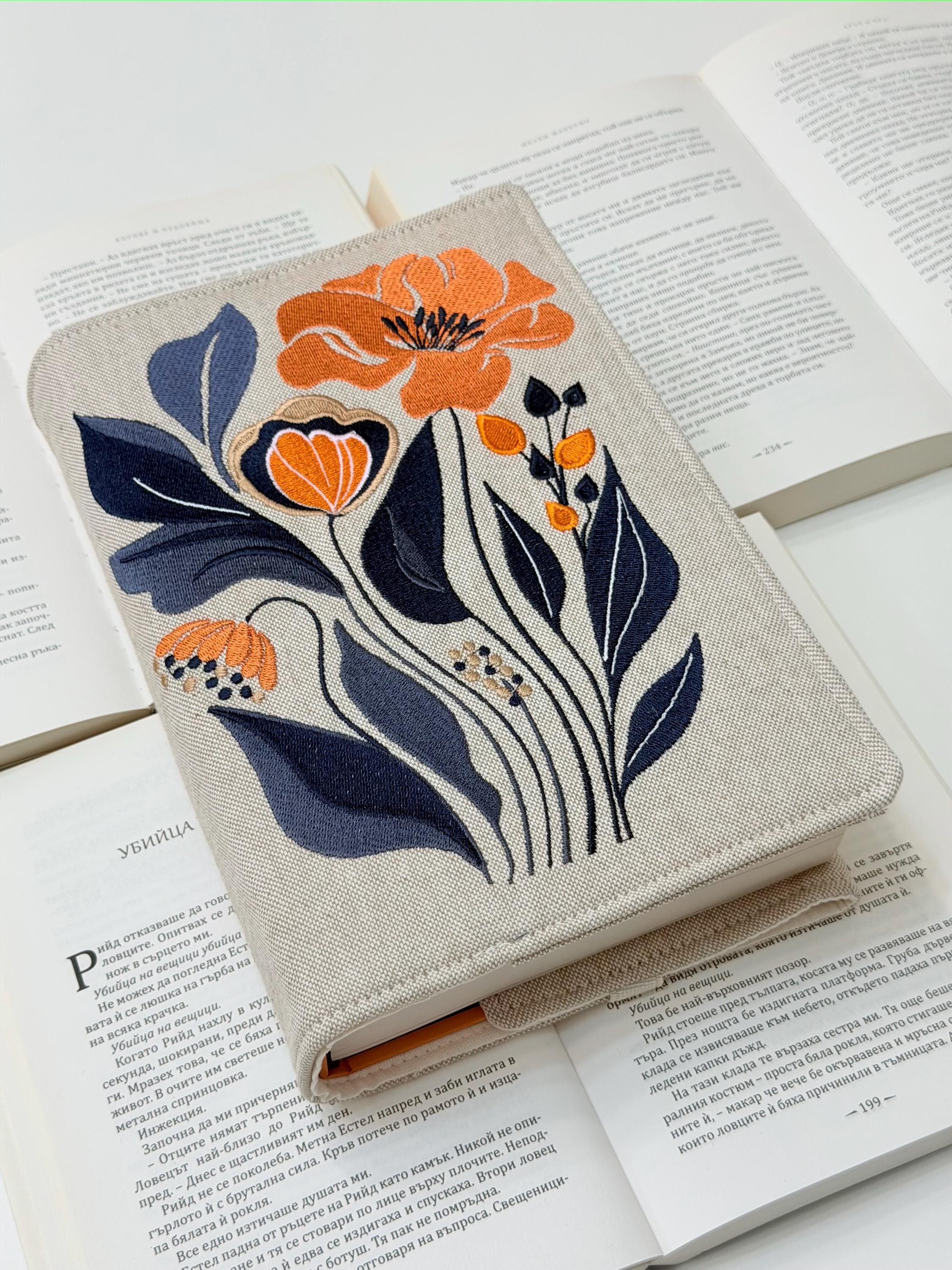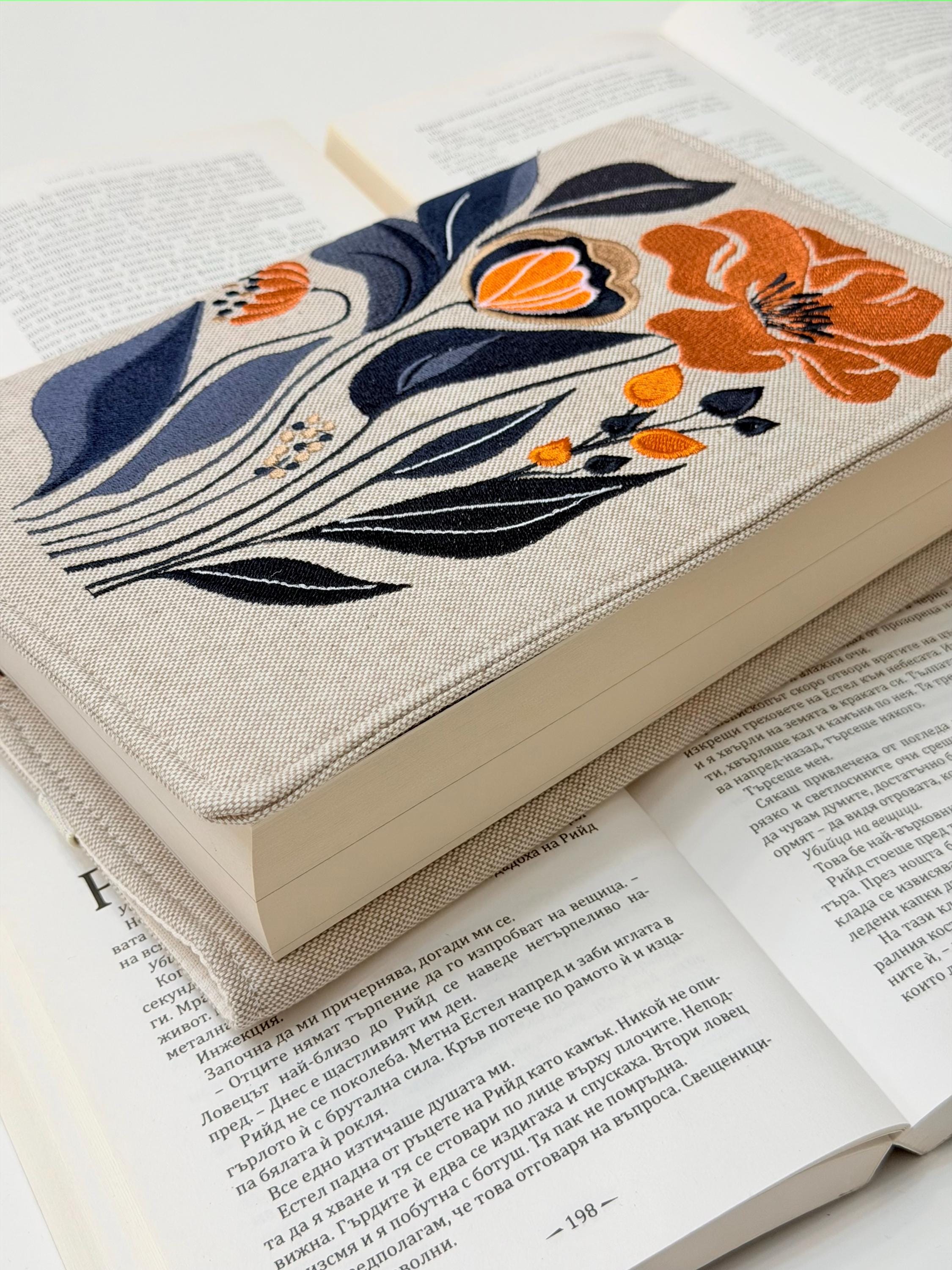 Wrap your books in floral elegance 🌸✨ This handmade adjustable book cover features my own original embroidery design of elegant flowers, created exclusively for Lullaby Crafts World. Designed to snugly fit hardcover books, it brings beauty, sophistication, and protection together in one timeless piece.