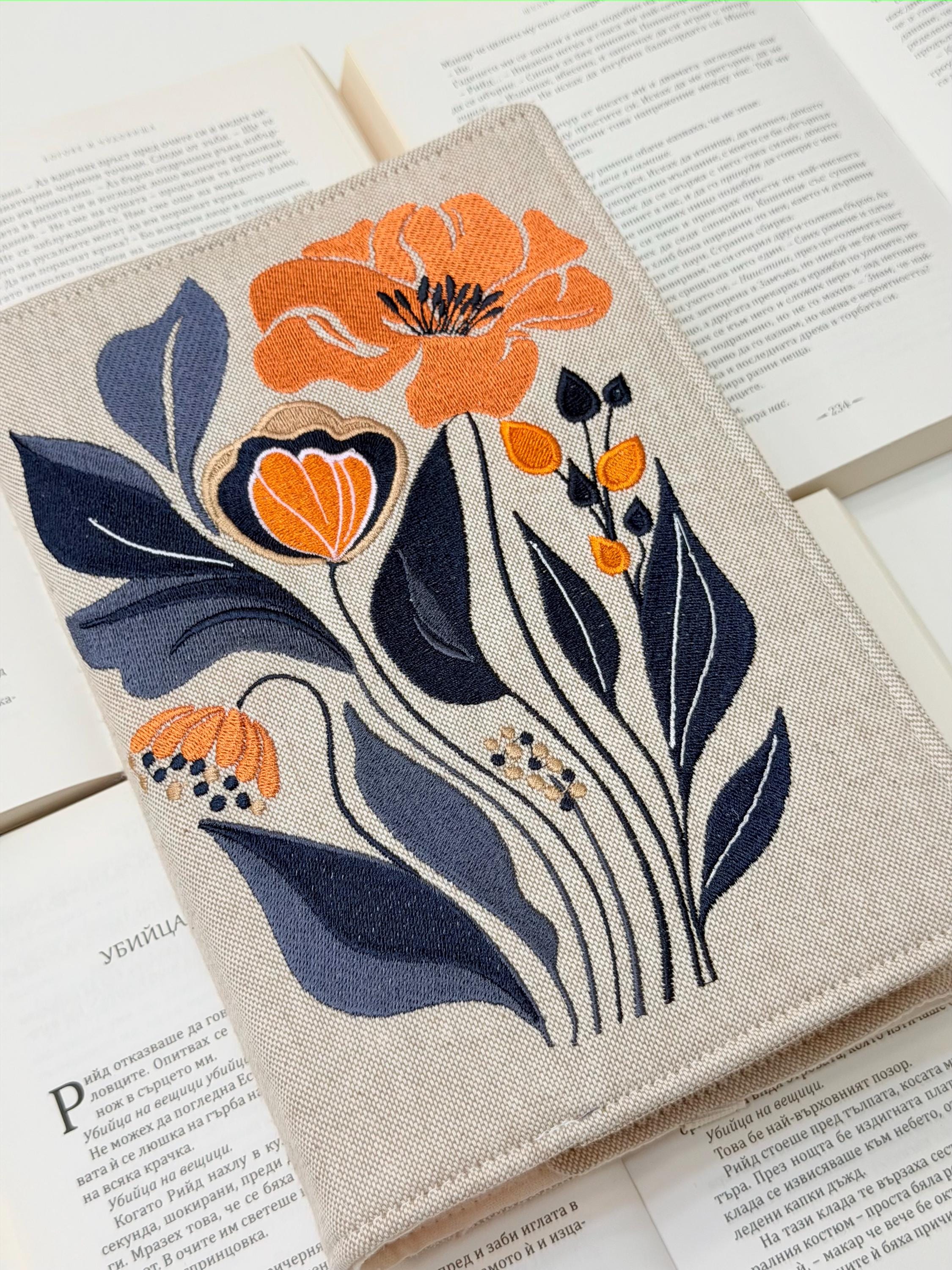 Elegant Embroidery Flower Adjustable Book Cover – Handmade Original Design by Lullaby Crafts World