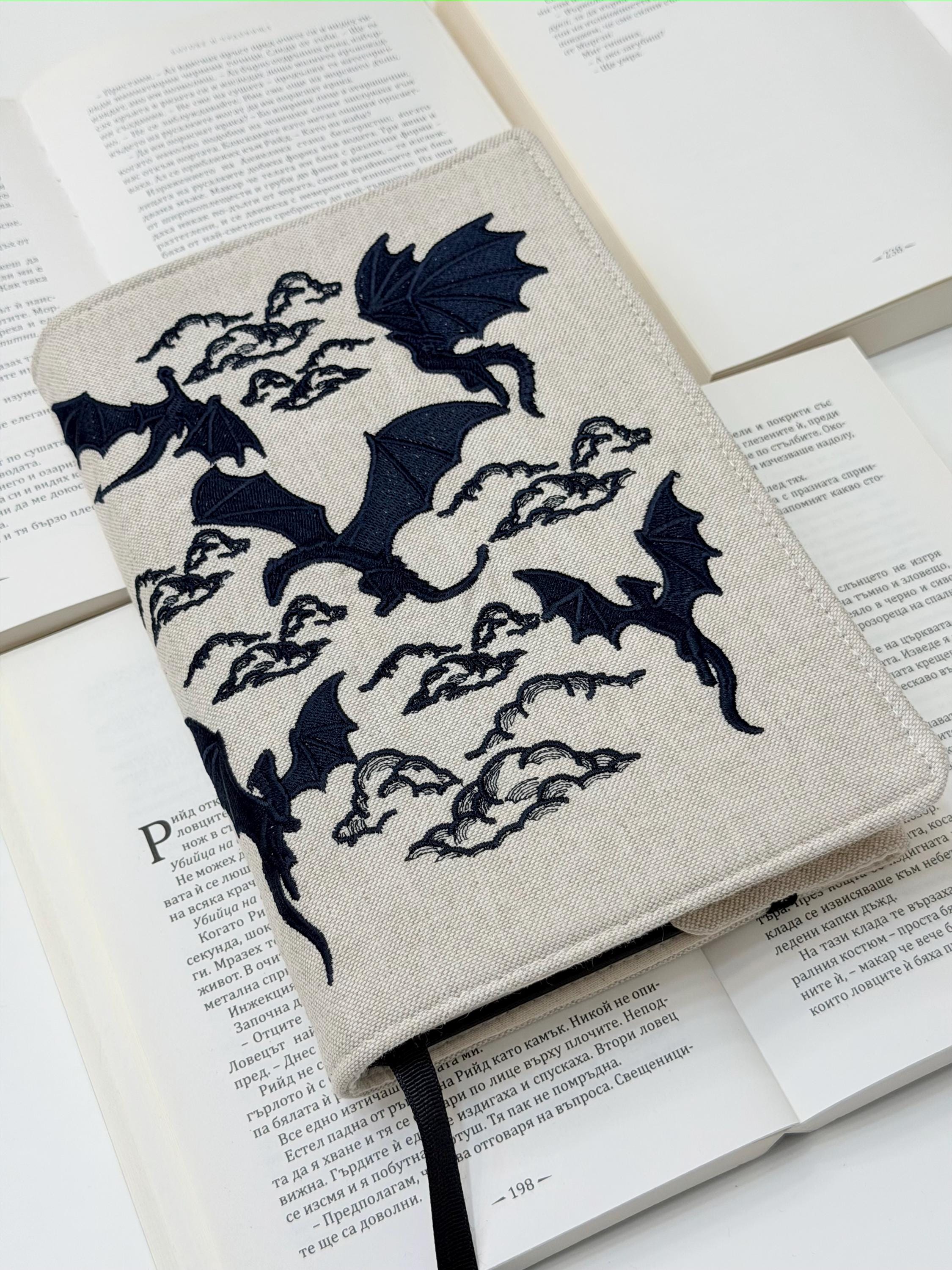 Linen Embroidery Black Dragons Adjustable Book Cover – Handmade Fabric Protector for Hardcover Books