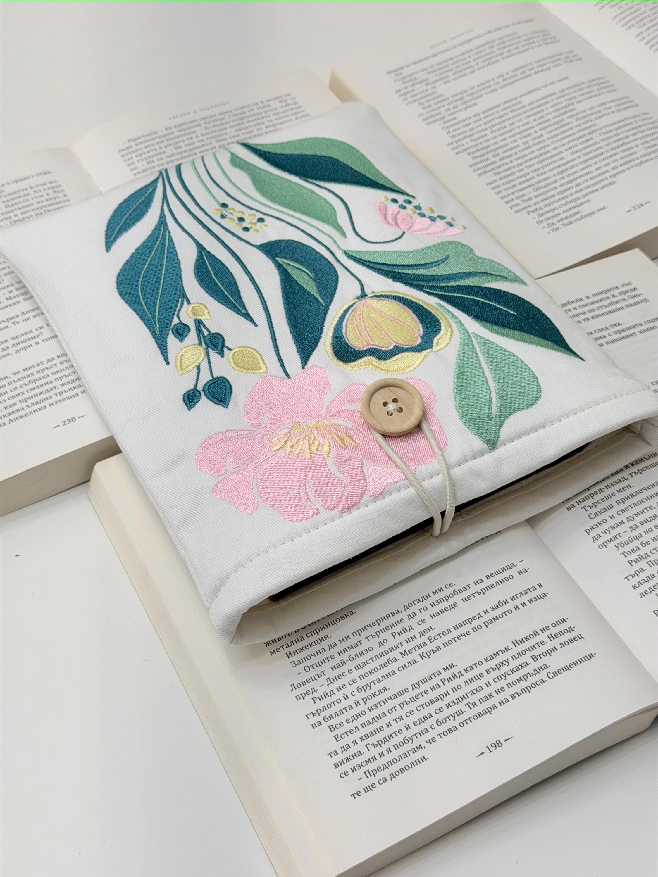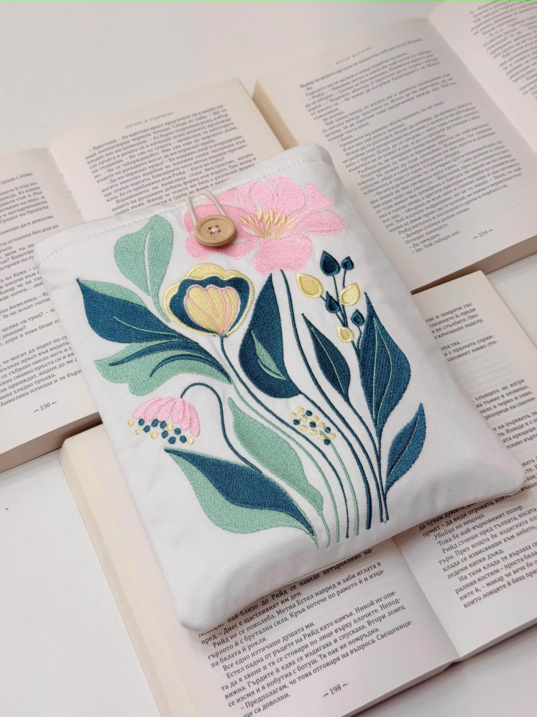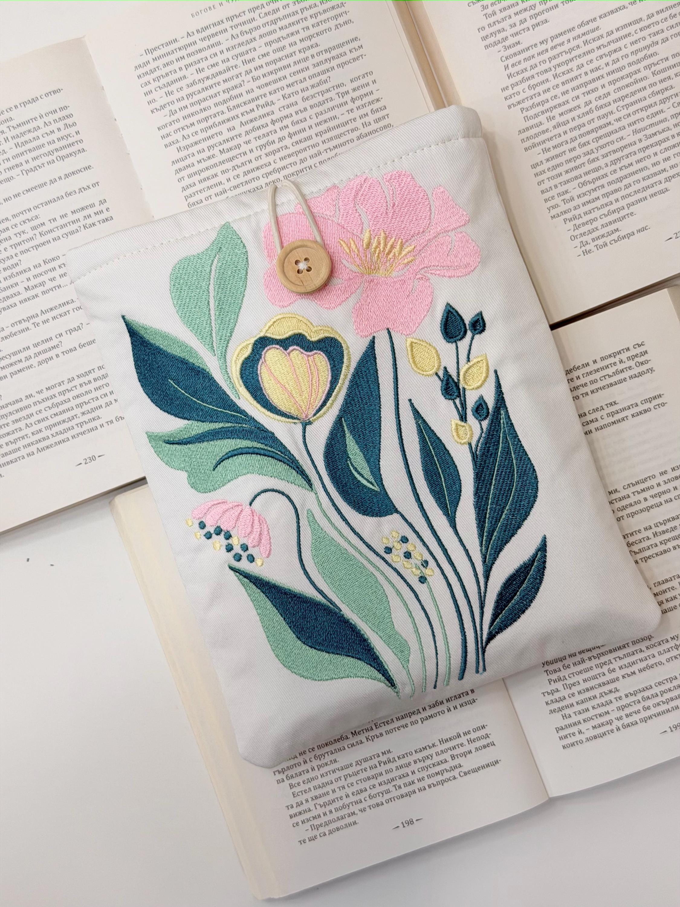 Protect your favorite books in style 🌸 This handmade padded book sleeve features my own original embroidery flower design, created exclusively for Lullaby Crafts World. Unique and artistic, it keeps your books safe from scratches, dust, and daily wear while adding a touch of floral beauty.