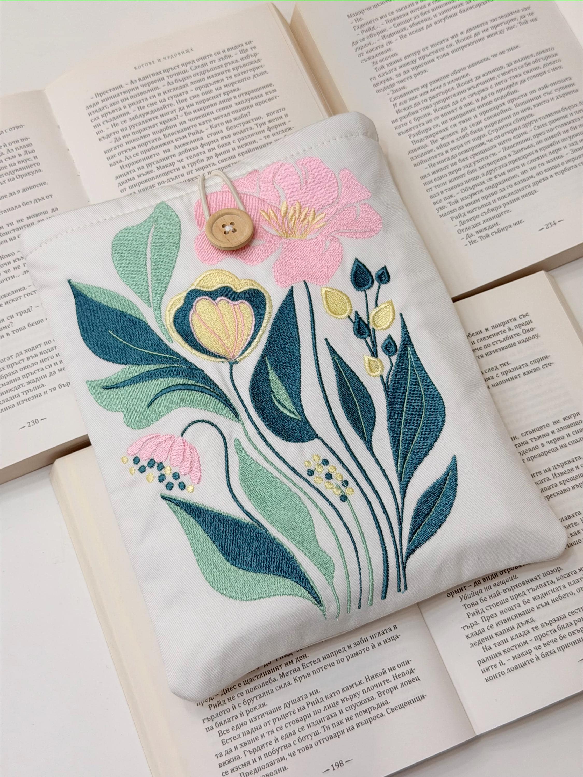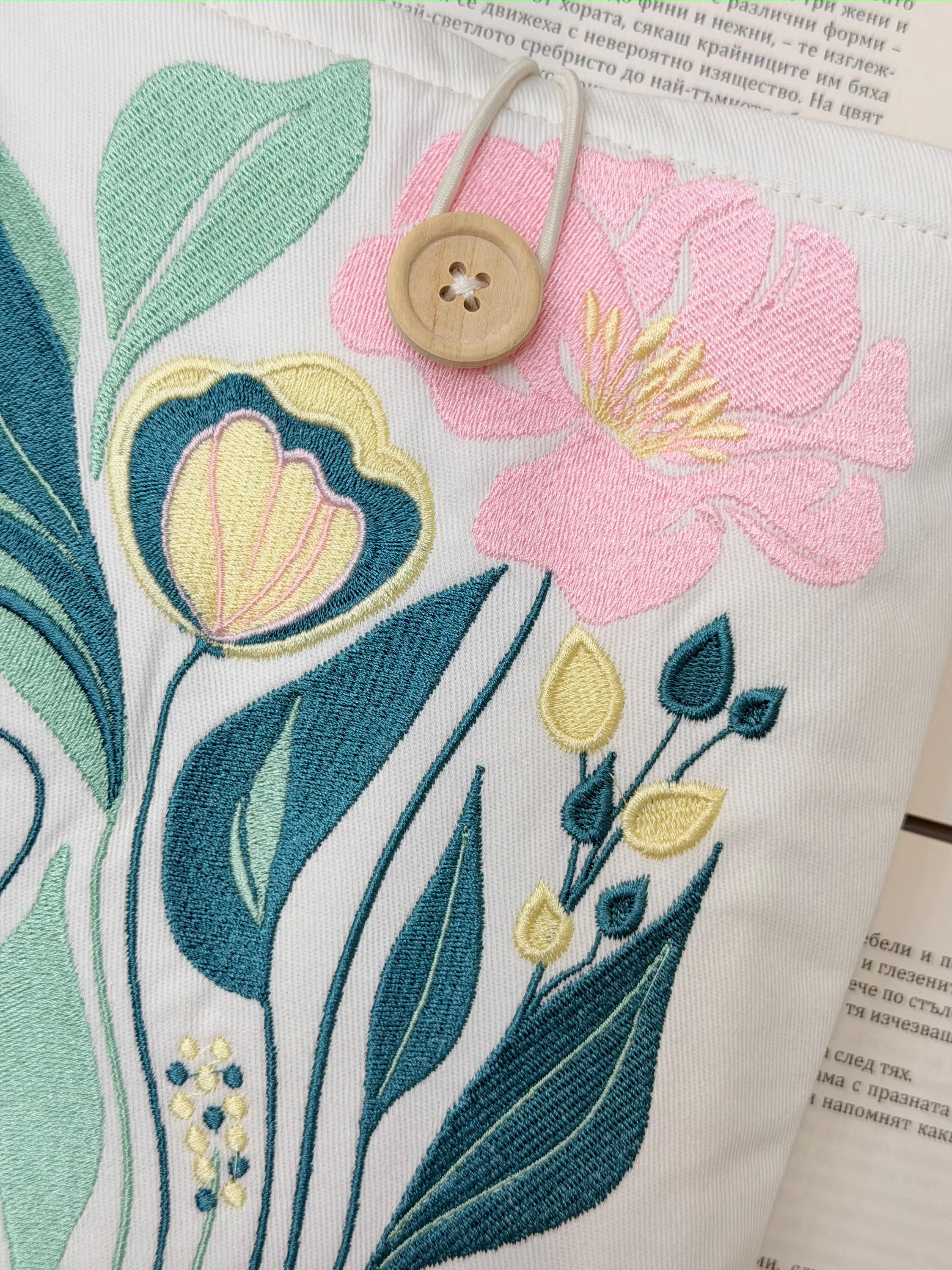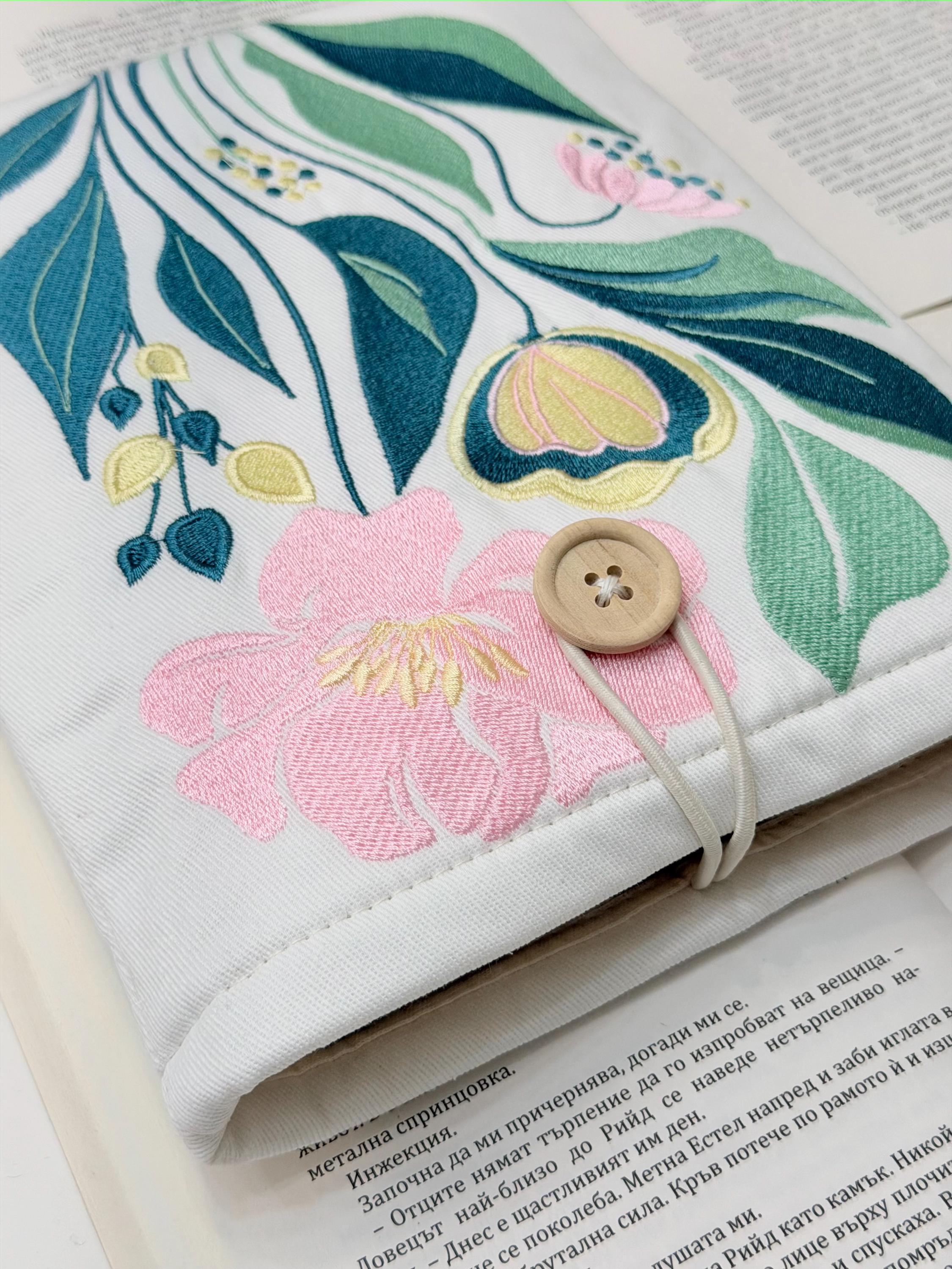 Protect your favorite books in style 🌸 This handmade padded book sleeve features my own original embroidery flower design, created exclusively for Lullaby Crafts World. Unique and artistic, it keeps your books safe from scratches, dust, and daily wear while adding a touch of floral beauty.